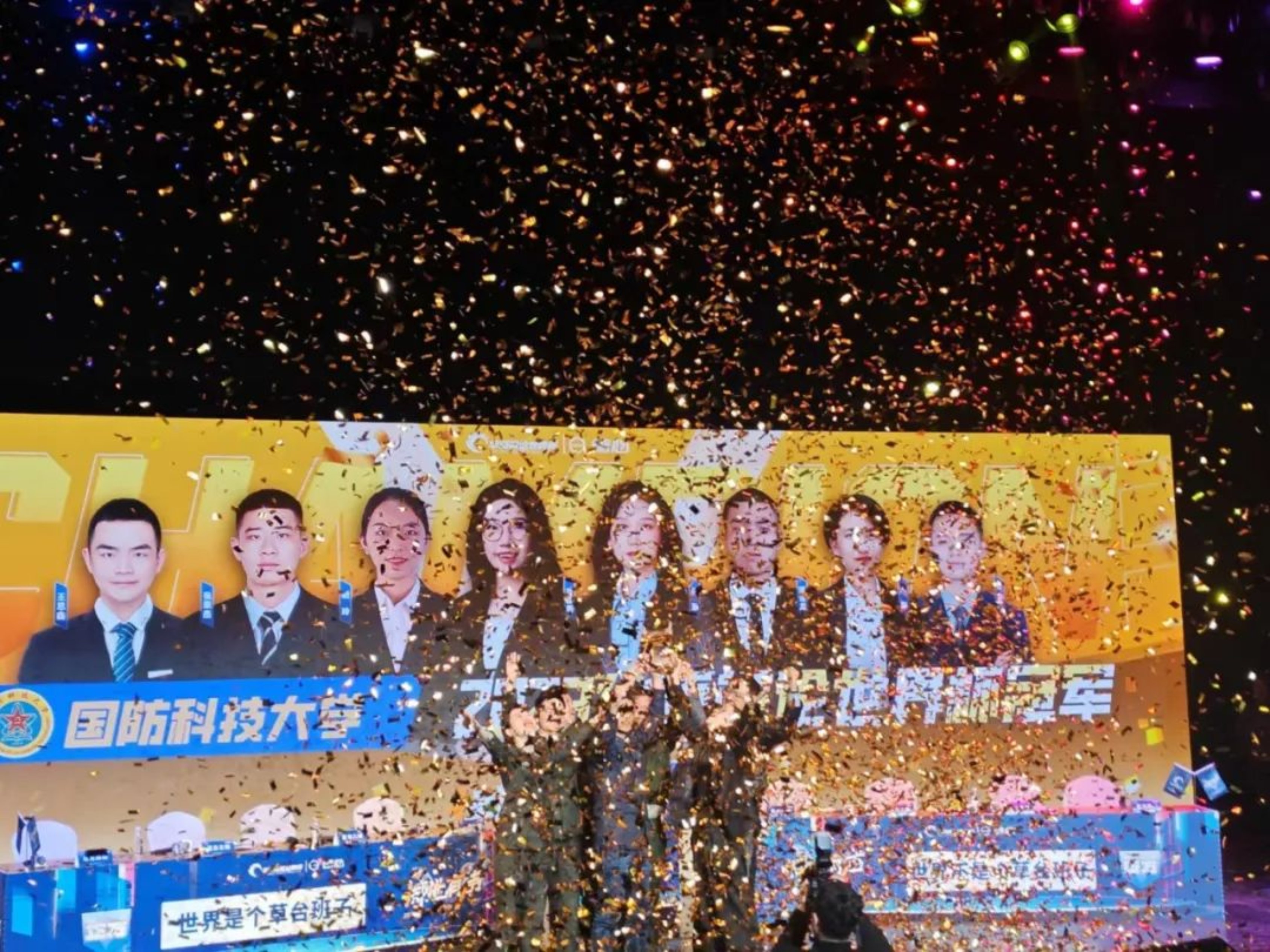 主办方宣布我们夺冠的瞬间,梦幻的金色彩带雨落下,比赛期间所有的紧张、焦虑和努力都化作了最甜美的果实。