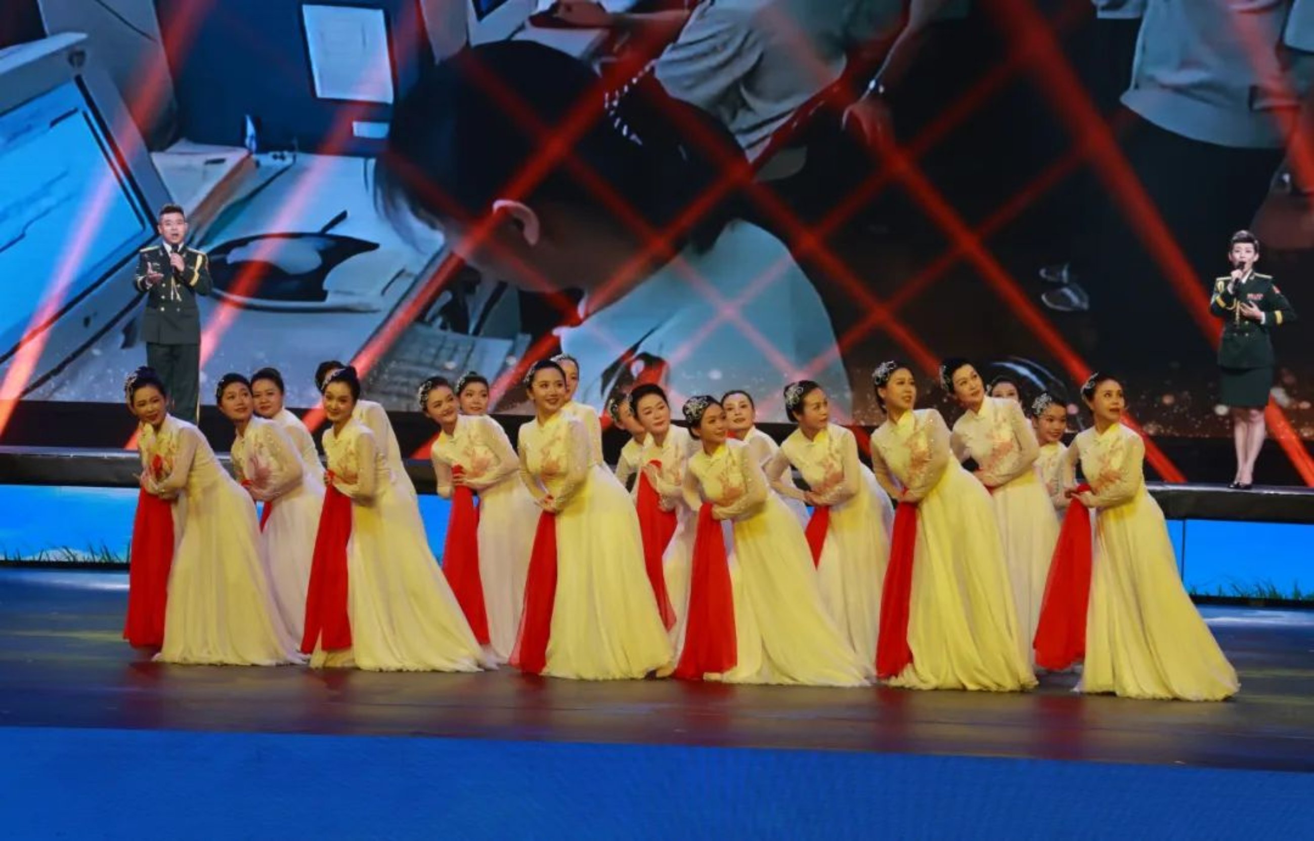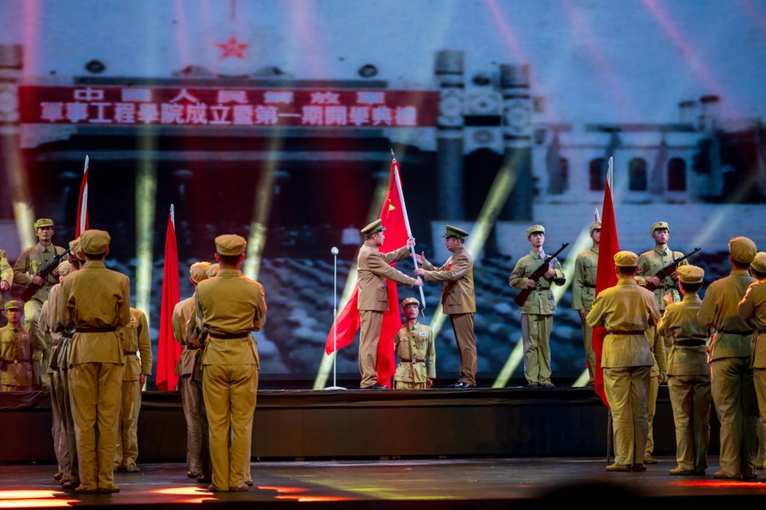 一代人有一代人的青春如火,一代人有一代人的奉献如歌。第二篇章“大美芳华”,串联组合歌舞、情景对话、多媒体节目,将一代代师生员工在学校学习工作生活的火热场景搬上舞台,展现各个历史时期青年学子矢志强军的猎猎风采。