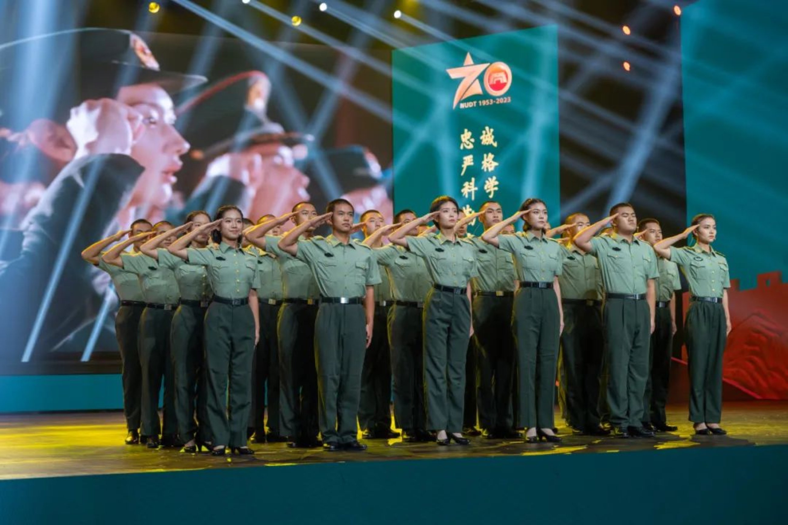 9月1日晚,国防科技大学建校70周年专题晚会《为军向战七十年》在长沙校区三号院隆重举行。大幕开启的那一刻,时光仿佛回到1953年。一段段激情燃烧的岁月、一首首或隽永或豪迈的歌曲、一幕幕动人的情景,引起了每一位在场观众的深深共鸣。