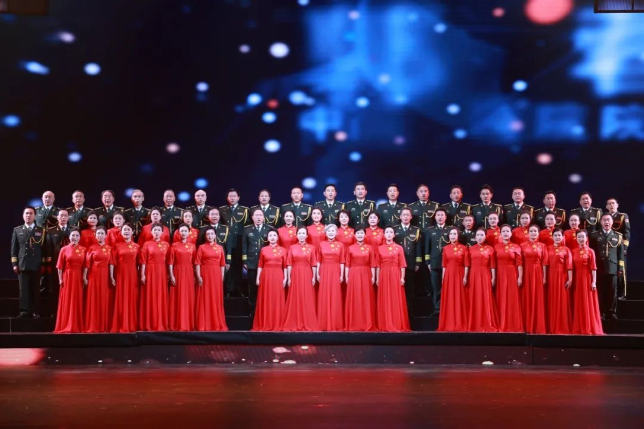晚会在大合唱《在党的旗帜下前进》中落下帷幕,热烈的掌声经久不息。这掌声,既是在致敬精彩表演,更是在致敬光辉岁月。“向着星辰大海奔去,那是我们心中的高地!”晚会结束,而科大人为军向战、奋进一流,鼎力支撑强军兴军伟业的脚步永不停止!