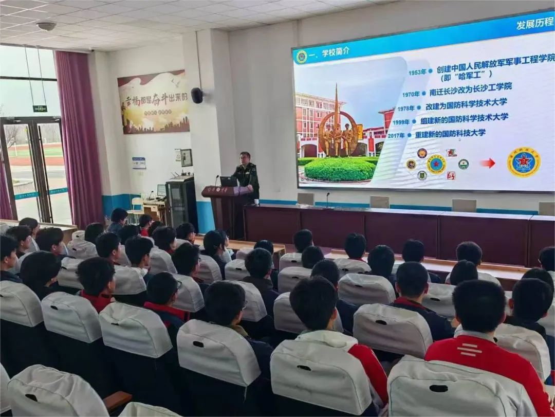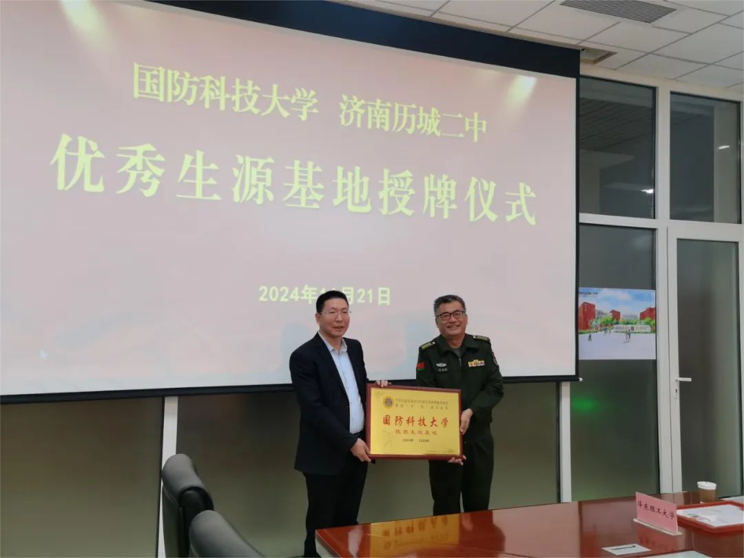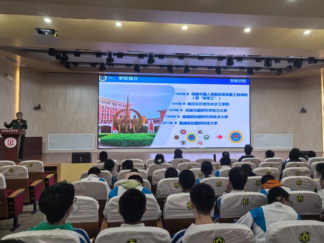 近日,国防科技大学山东招生组赴山东省章丘四中、历城二中、山东省实验中学、山东师范大学附属中学、潍坊一中、诸城繁华中学、诸城龙城中学、淄博六中、淄博实验中学、沂源一中、高青一中、烟台一中等12所中学,开展宣讲会、座谈会、生源基地中学授牌等招生宣传活动。