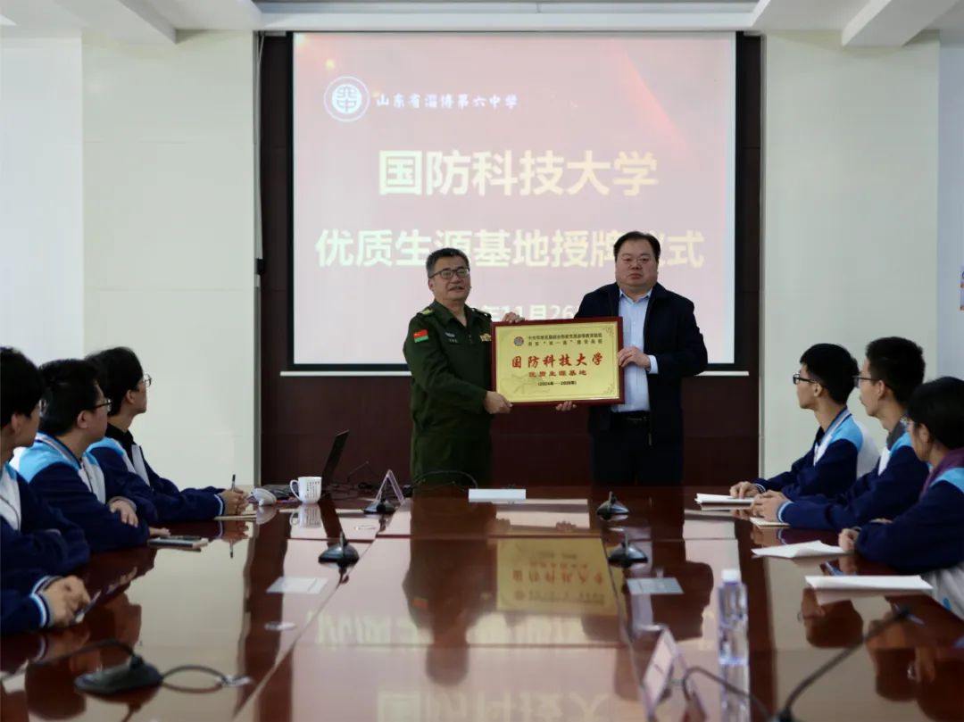 在山东省实验中学、淄博市第六中学、潍坊一中、历城二中、烟台一中,山东招生组组织开展优质生源基地授牌仪式并与中学领导进行深入交流。李爱平教授介绍了国防科技大学近年来的发展情况、招生政策、专业设置等,希望能够加强与中学的沟通交流,共同为国家培养素质全面的优秀人才。相关中学领导对招生组的到来表示热烈欢迎,并希望能够持续深化与学校的交流共建,为更多优秀学子成长成才搭建桥梁。
