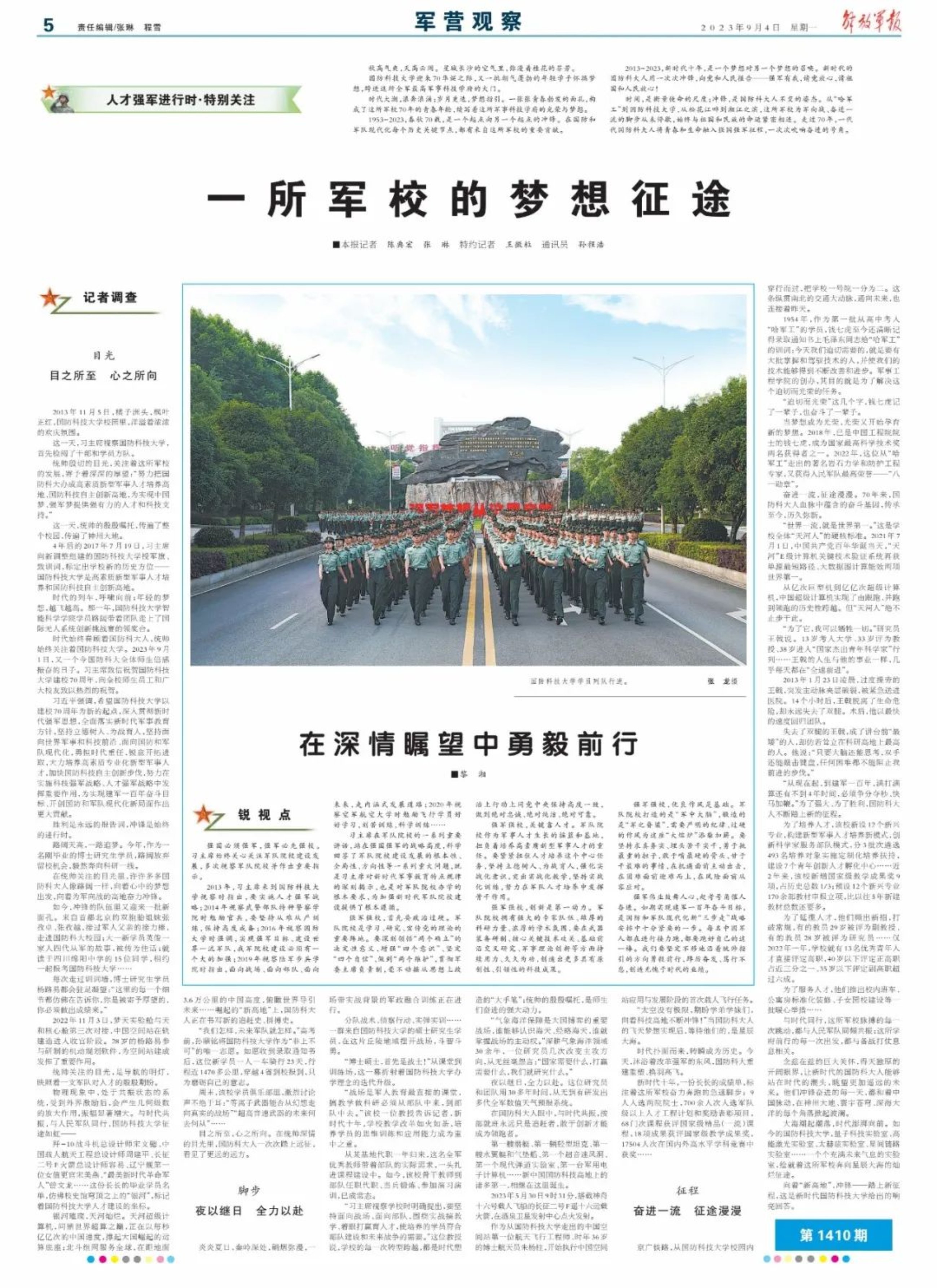 在统帅关注的目光里,许许多多国防科大人像路阔一样,向着心中的梦想出发,向着为军向战的高地奋力冲锋。