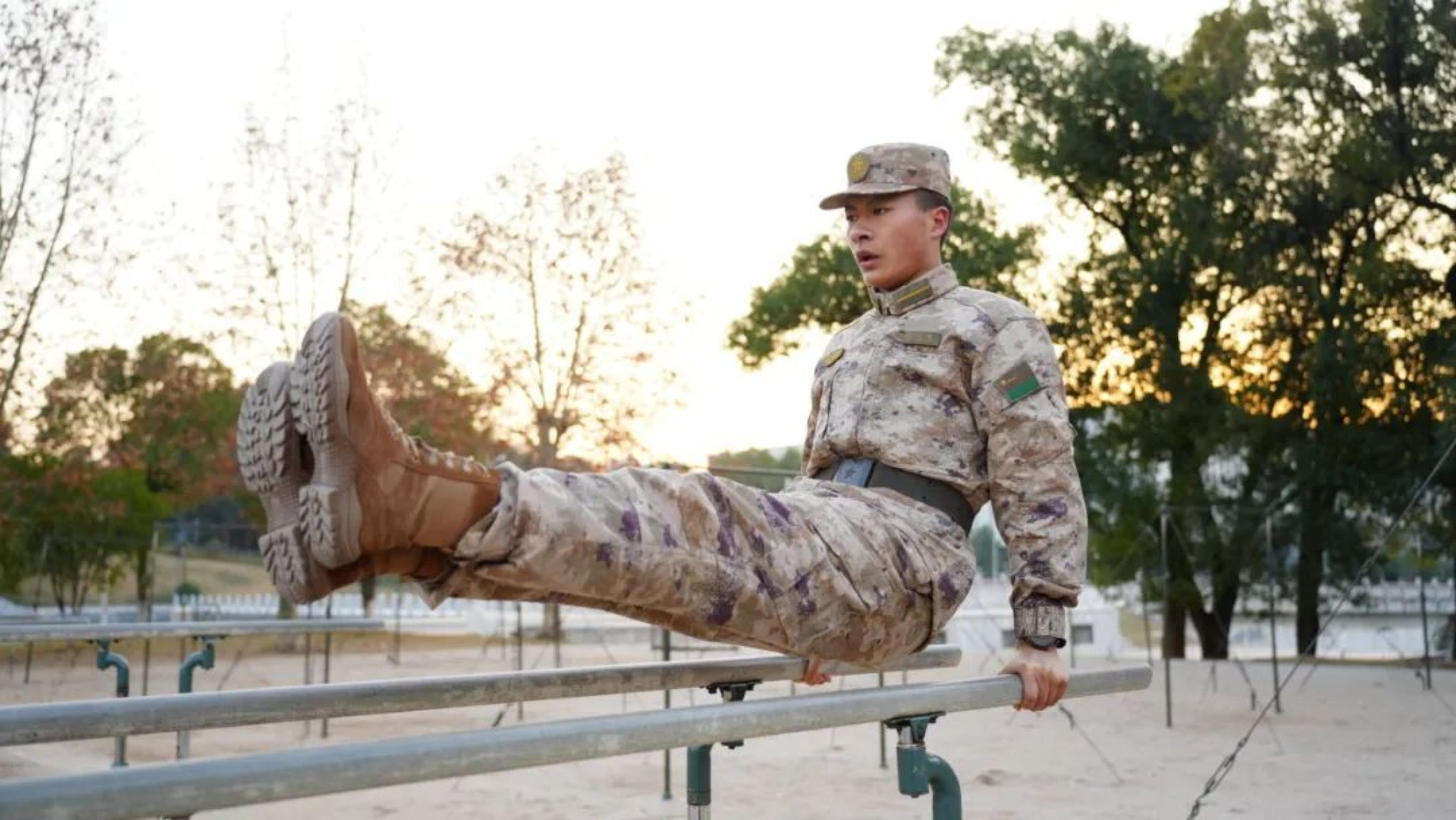 是铮铮脊梁落日熔金熔入赤诚英姿挺立不朽风采霞光满天中四方守卫红旗扬动云霞烛天火焰燎到地面勾勒英姿飒爽战备之美红旗猎猎朝阳伴之升起军号嘹亮晨光被它唤醒军士出征踏光前行红旗迎过朝阳红与金的照耀中神采飞扬朝气勃发中立地点将熠熠晨光斗志昂扬灼日却乌云身背钢枪望远方力量之美霞光万丈努力不朽夕阳如火汗水荣光健壮的身体是昂扬的底气日复一日的训练为更好担起山河的使命最绚烂的晚霞雕镂出最敏捷的身影晨辉初现...