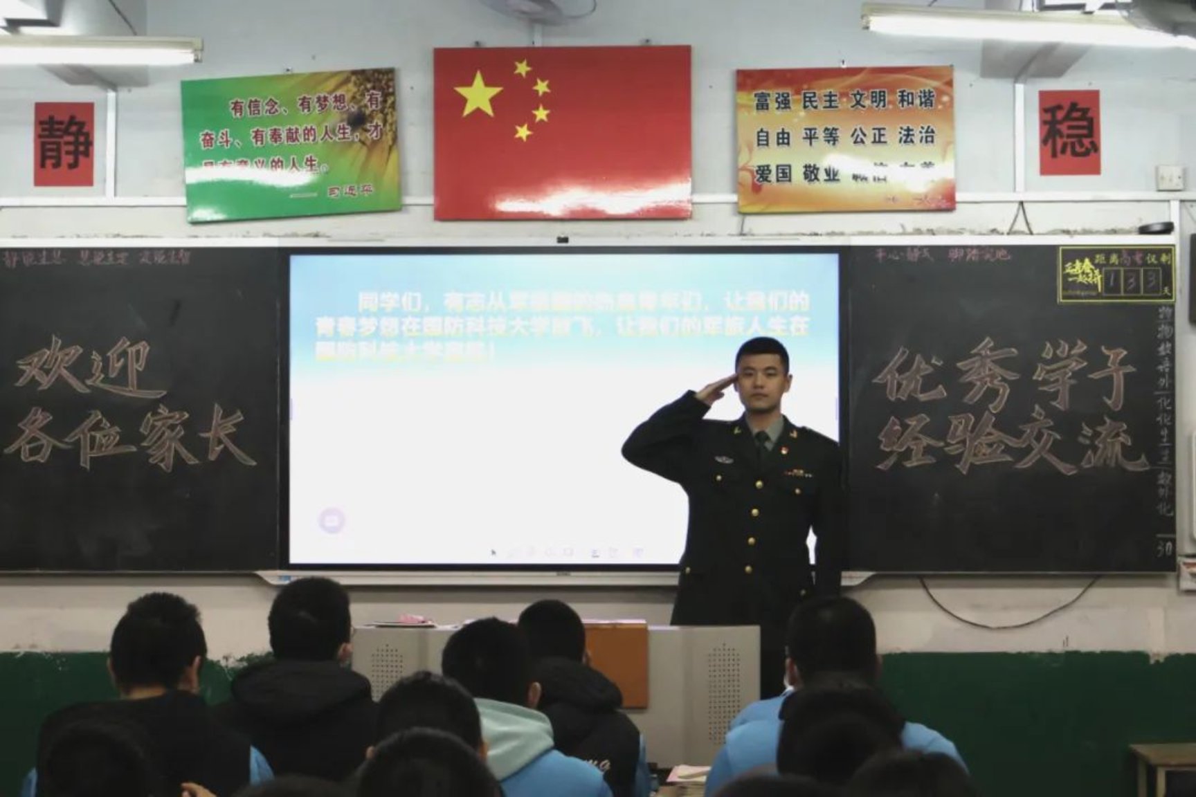 这是一次传递梦想与信念的旅程,是筑梦、追梦、圆梦的起点,看着同学们全神贯注的神情,我仿佛看到了曾经的自己,感受到了他们对国防科大的憧憬和对国防事业的热爱。这次宣讲让我更加坚定了自己的选择,也很荣幸有机会为学弟学妹提供指导帮助。希望他们能勇敢追逐梦想,在不远的未来穿上军装,成为国防事业的中流砥柱。(毕业于武安市第一中学)