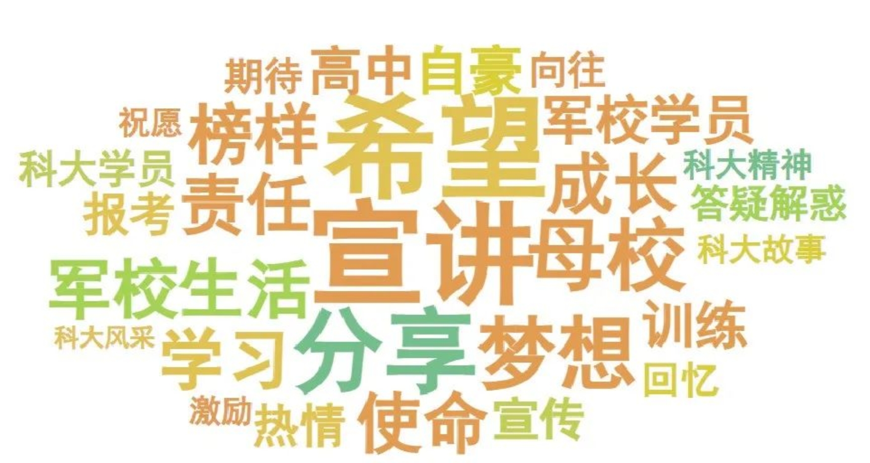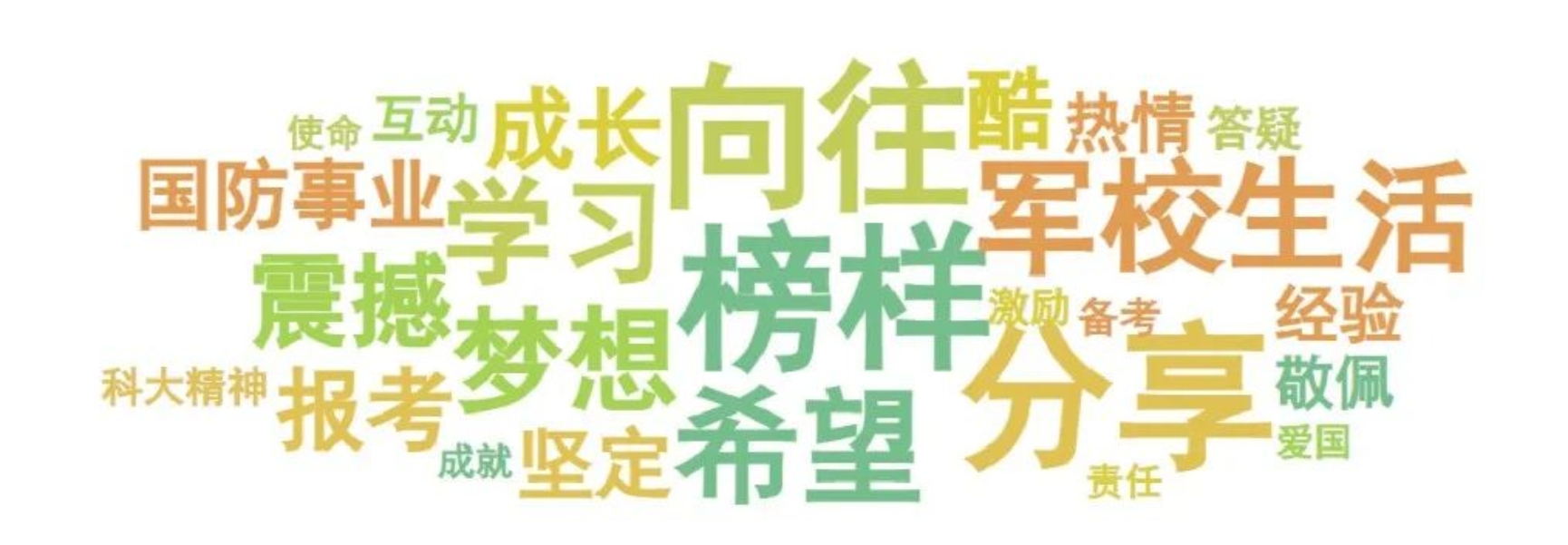 甘肃省兰州市第三十三中学高二年级学生 张鹤轩:优秀学长们的宣讲激起了我对军校生活的无限憧憬,学长们对备考方向以及高中学习的建议都让我受益匪浅。未来掌握在我们手中,我们要向优秀的学长学姐们学习,争取在两年之后同样进入国防科大的校园,投入到国防和军队现代化建设中去!