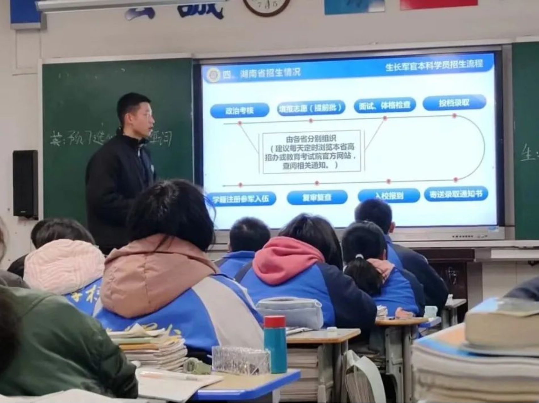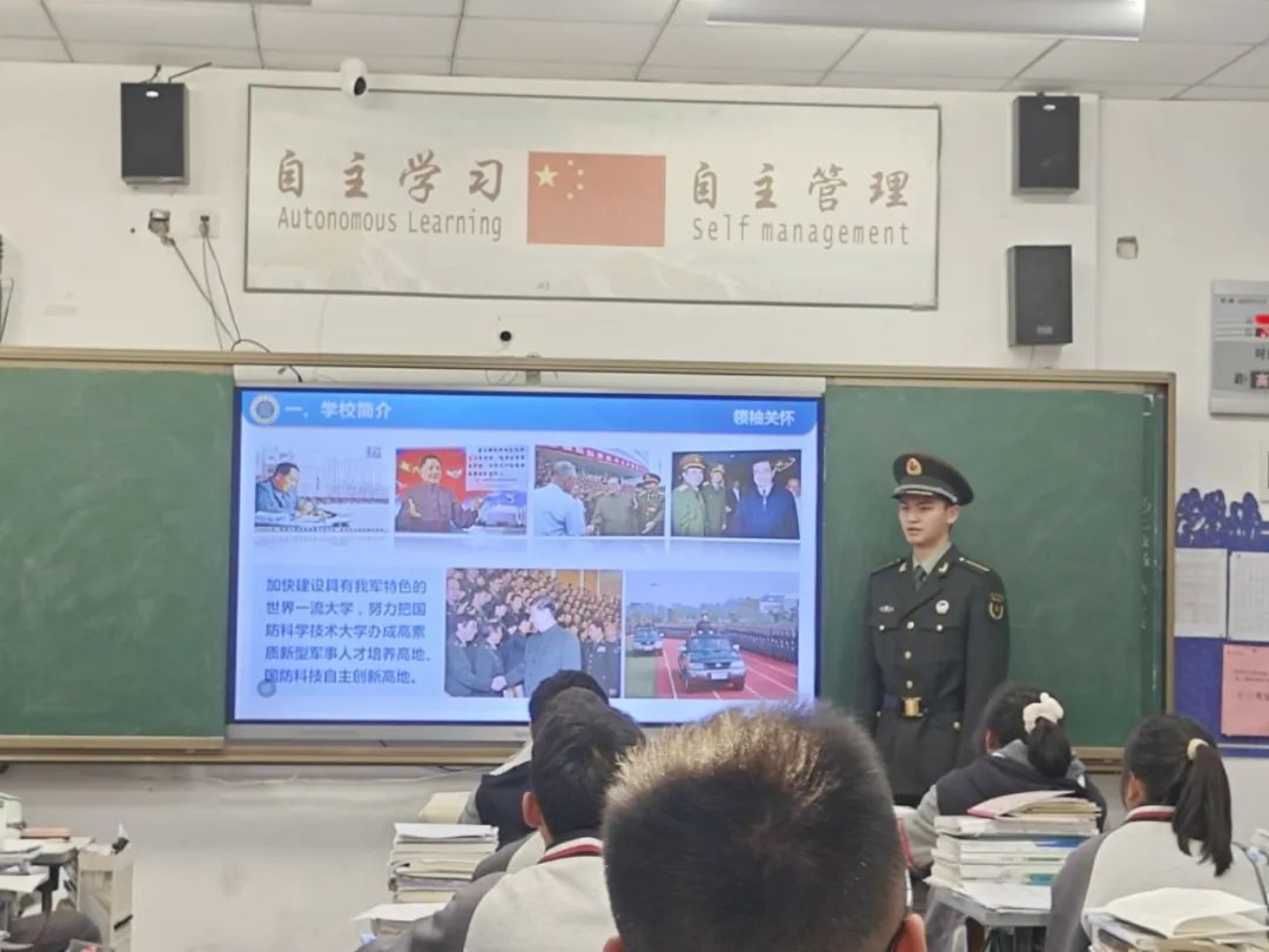 寒假期间,国防科大“母校中学行”汇报宣讲活动火热进行,近2500名学员深入1200余所母校中学,汇报成长历程、畅谈军校生活、分享学习心得,为学弟学妹解惑引路,鼓励优秀学子积极投身强军事业。