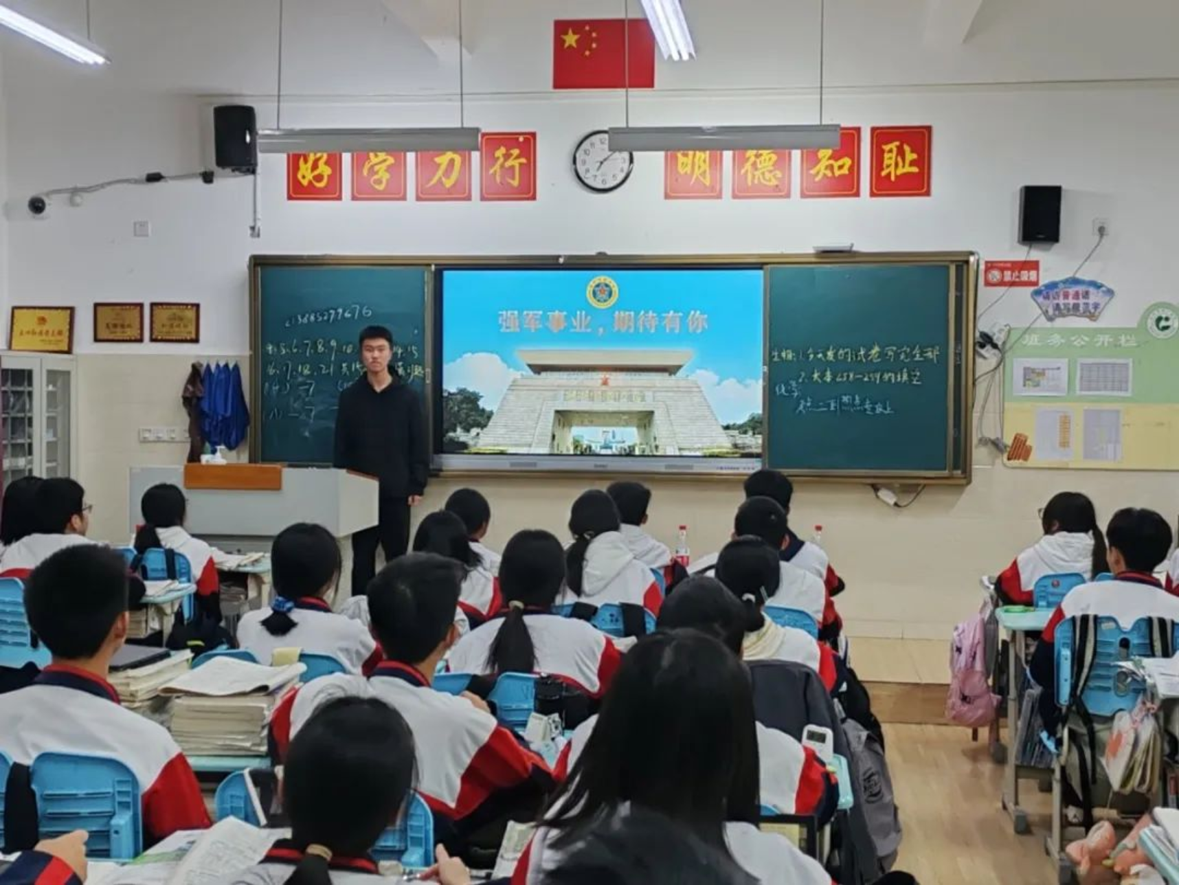 回到母校宣讲意义非凡,在这个充满回忆的地方,我不禁想起自己高三时的苦涩与辛酸,曾几何时,我也日夜思索着奋斗的意义,如今顺利考入了国防科大。我想为高三学子分享学习经验心得,传递正确的价值观与人生观,宣扬矢志从军报国的崇高理想,赓续传承红色血脉。