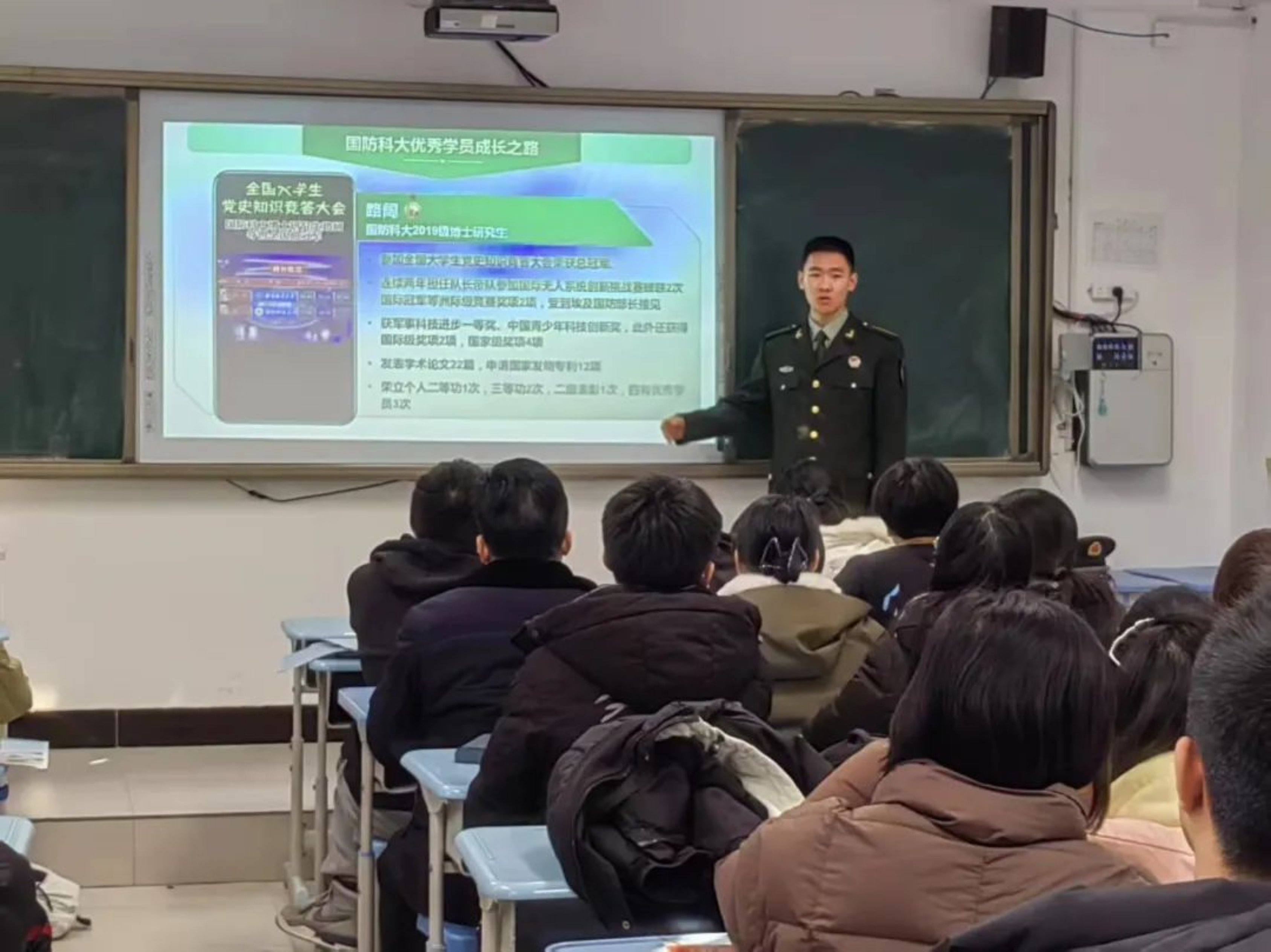 2025年寒假,国防科技大学“母校中学行”汇报宣讲活动火热进行,3600余名本科学员陆续回到母校中学,汇报成长历程、畅谈军校生活、讲述科大故事、分享学习经验,为学弟学妹答疑解惑、引路领航,鼓励优秀学子积极投身国防事业,踏上强军征程。