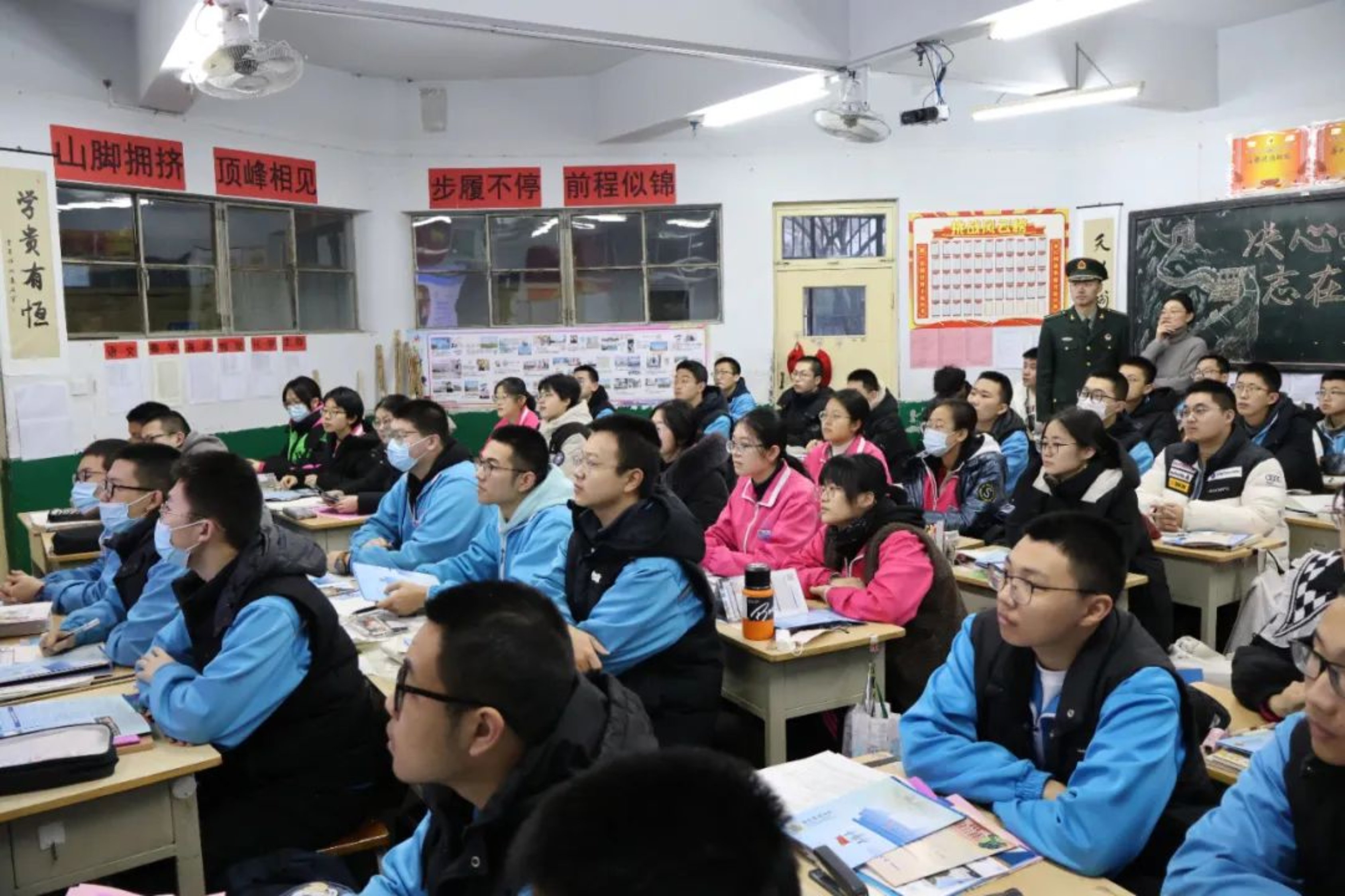 在状元楼104教室,宣讲团成员马率博和梁栋梁介绍了学校的基本情况、办学定位和使命任务,为同学们解答了有关报考方面的疑问,点燃了高三同学参军报国、矢志强军的热情;在状元楼308教室,宣讲团成员谢译兴结合自身成长历程,鼓励高三同学努力学习,将热血青春融入强军梦想,为强军事业贡献力量。