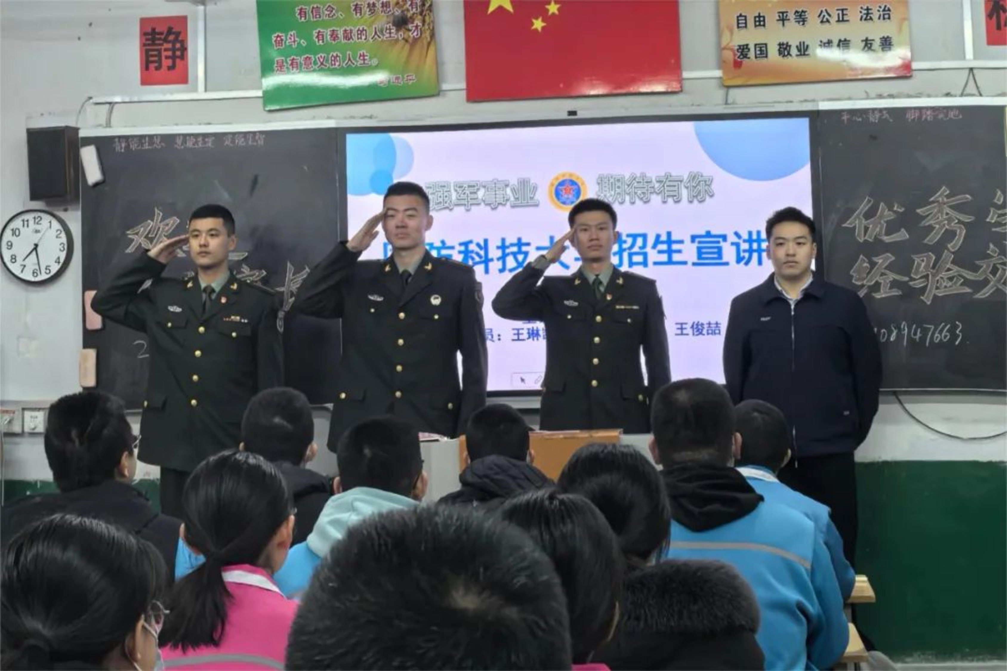 我为同学们讲述军校的日常,训练场上的挥汗如雨、课堂上的严谨认真、集体生活的温暖与团结,并鼓励他们勇敢追求自己的梦想。看到他们认真记录、积极提问的样子,我仿佛看到了曾经的自己,心中涌起一股暖流。