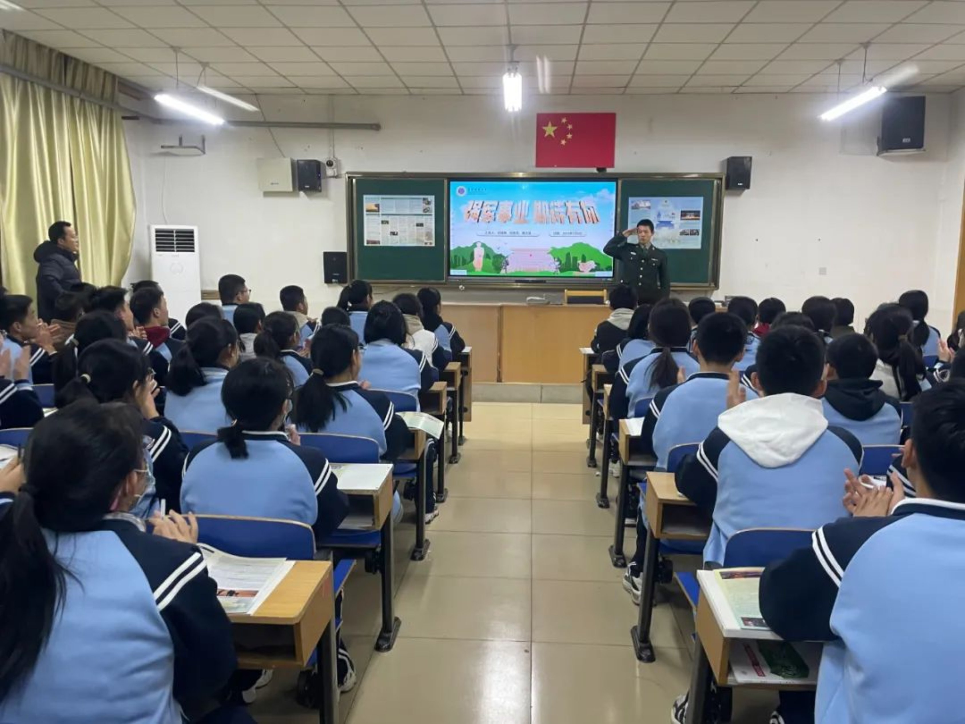 在宣讲过程中,我们介绍了国防科大前沿的科研成果、雄厚的师资力量,讲述了学校在岁月长河中历经的风雨与取得的成就,并分享了丰富多彩的校园生活。这场宣讲,不仅是知识的传递,也是精神的传承,更是我成长路上的重要洗礼。我将带着这份珍贵的经历,在国防科大继续砥砺前行,为实现强国梦、强军梦挥洒热血!