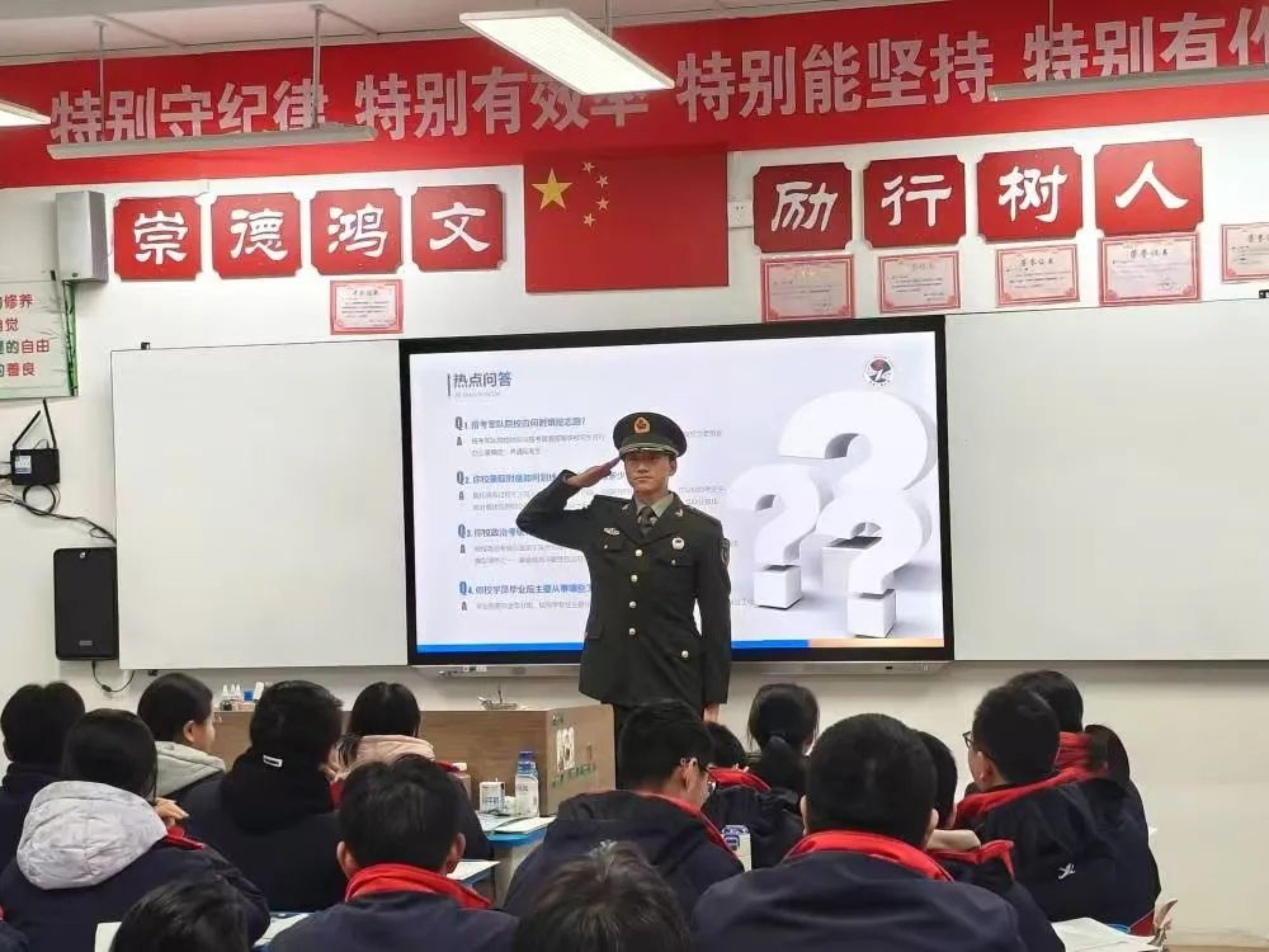 对于这次宣讲,我做了充足的准备。当我在讲台上看到许多同学充满热情、积极踊跃地参与到我们的互动环节,我的心中便有了前所未有的满足感。我此行的目的只有一个,让更多同学对国防科大有所熟悉、有所了解,并且呼吁更多同学报考国防科大,实现青春理想,为强军事业添砖加瓦。