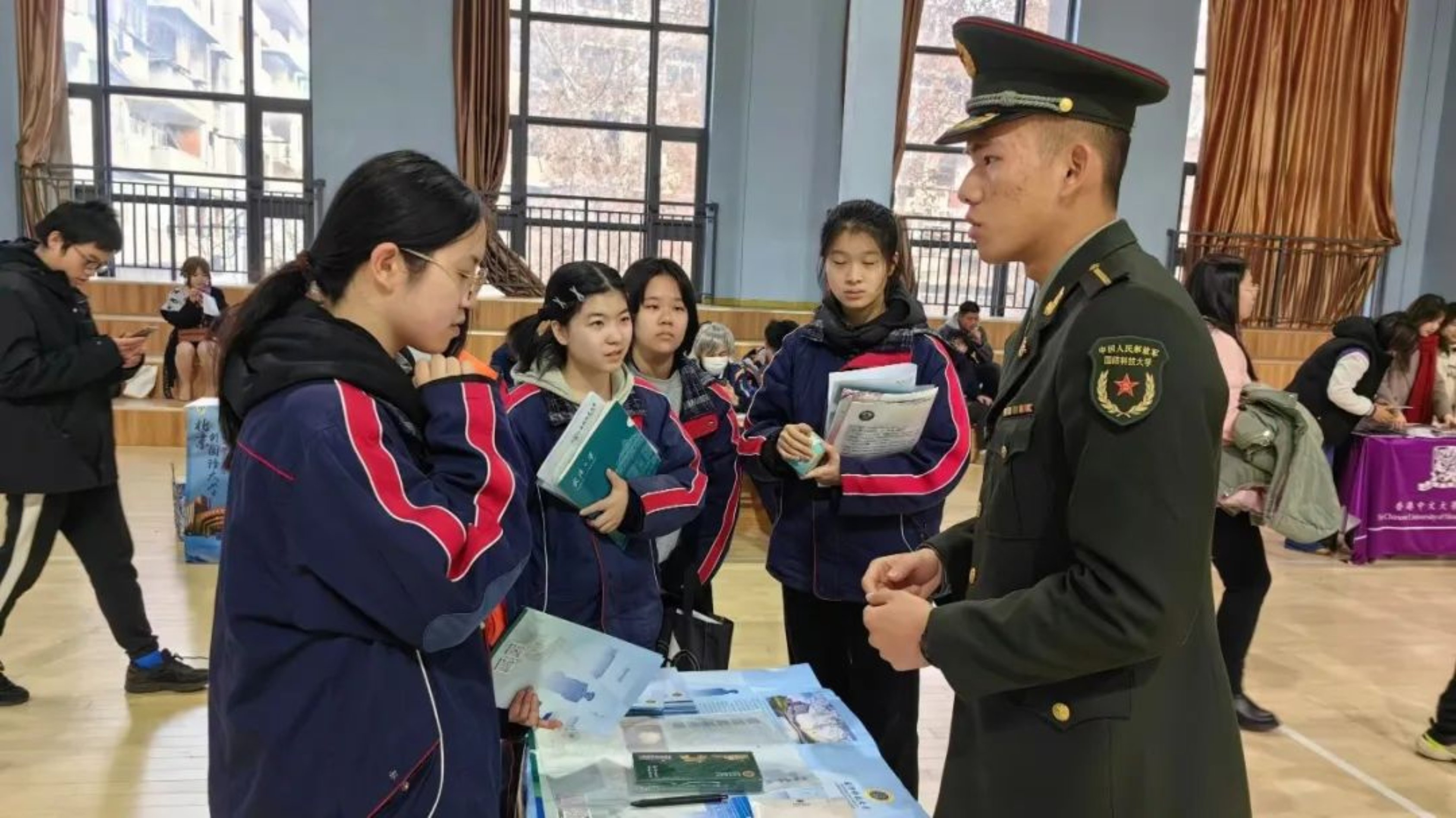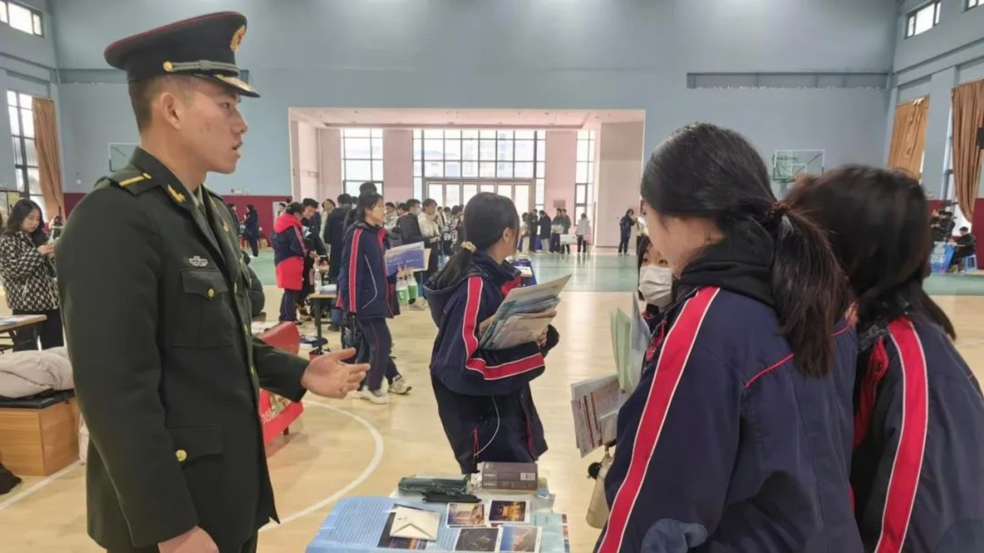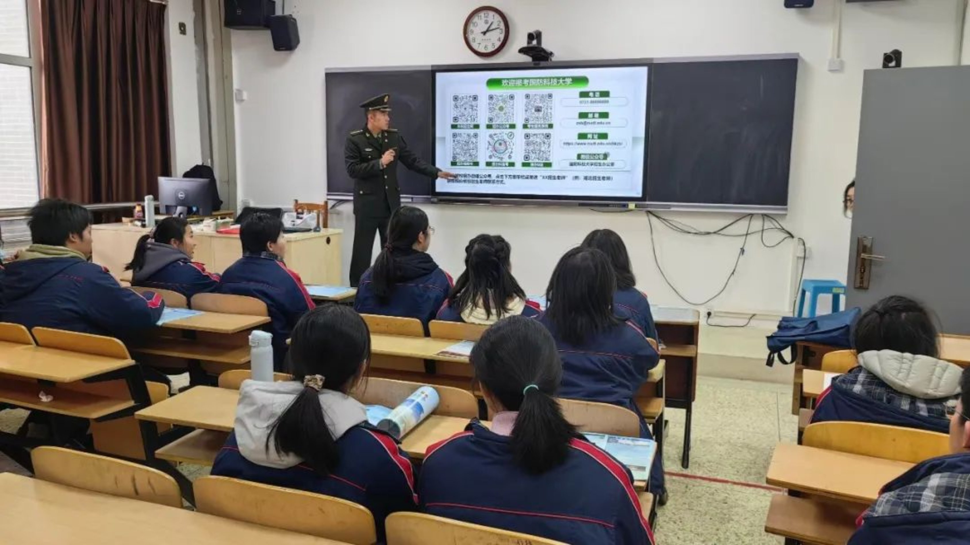 参与本次宣讲,令我惊喜不已。许多家长前来问询,既有望子成龙的无尽期许,又寄托着盼望子女为国效力的美好愿景,学校也给予了我们很大帮助。最让我难忘的是学校的“国防教育长廊”,不仅有丰富的国防宣传内容,还陈列着众多国之重器的模型,以及对军校的详细介绍,令我深受启发。