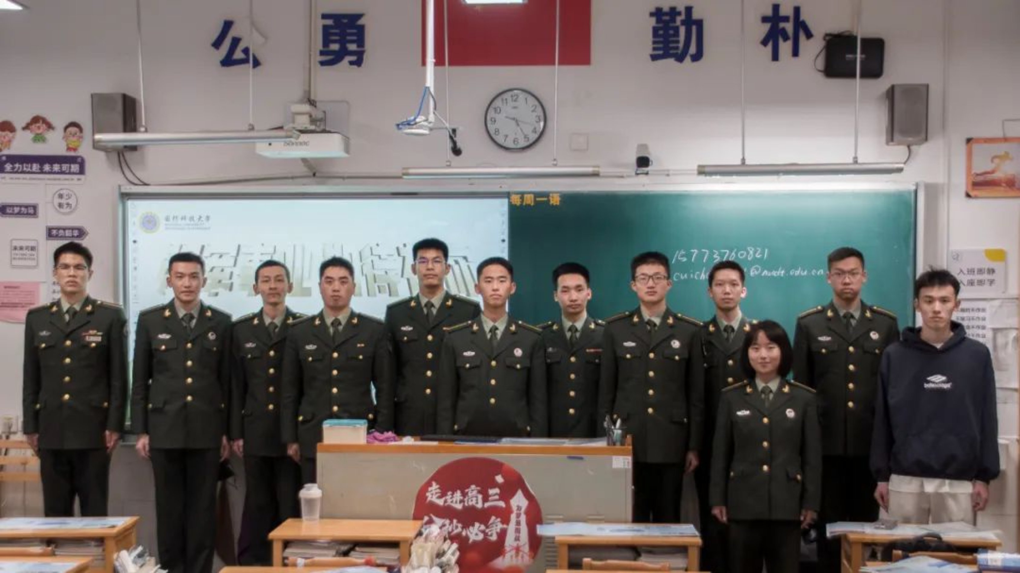 在参与这次招生宣讲时,我内心涌动着一种传承力量。曾经,我们也是那些对军旅充满向往、四处探寻道路的青年;如今,我们已然站在了这里,成为了为后来者答疑解惑的引路人。我们凭借努力踏上军旅征程,用青春和热血守护着祖国的每一寸土地。我相信,在我们之后,还会有更多怀揣炽热爱国之心的有志青年投身国防事业,续写属于他们的荣光。