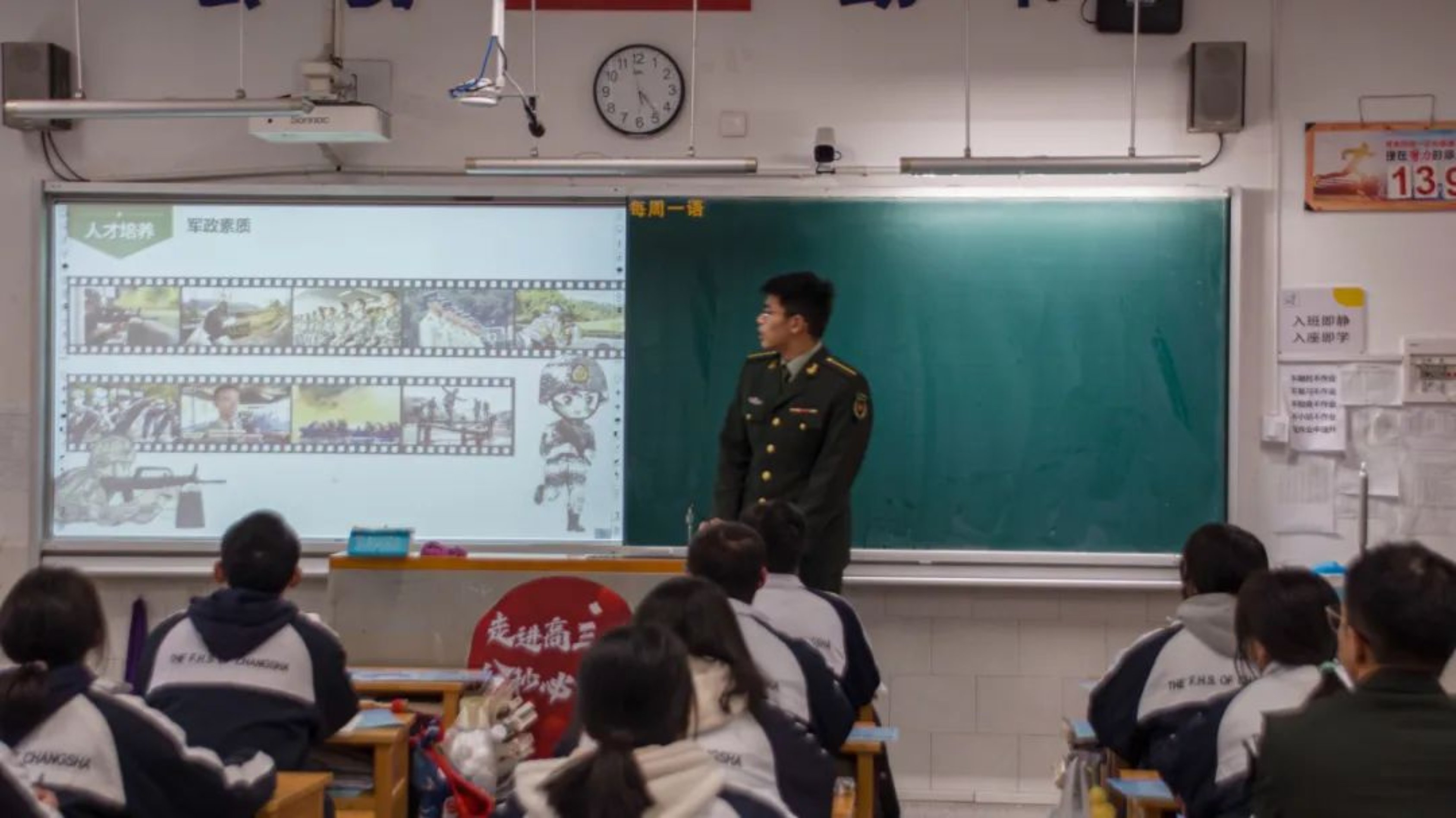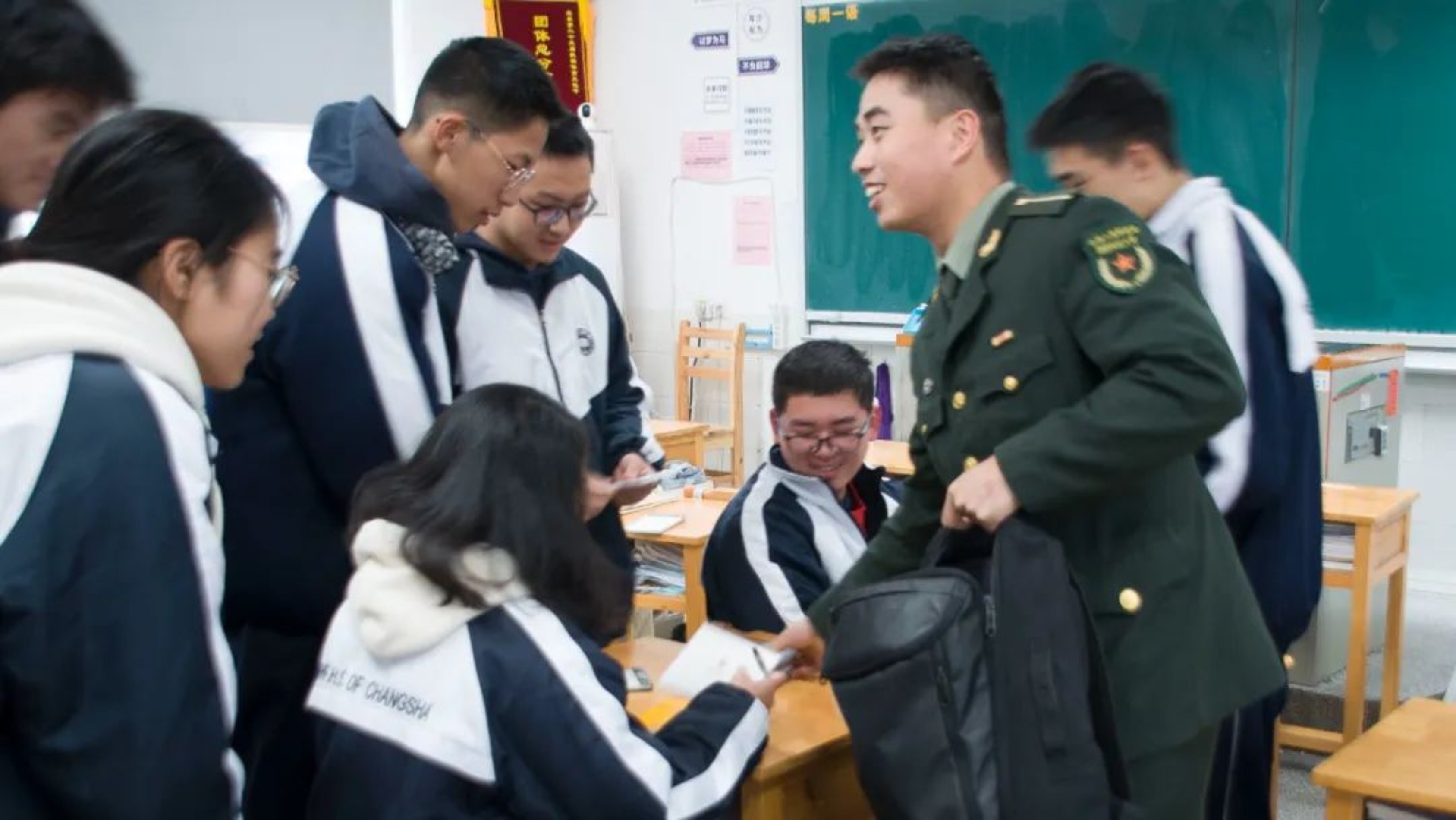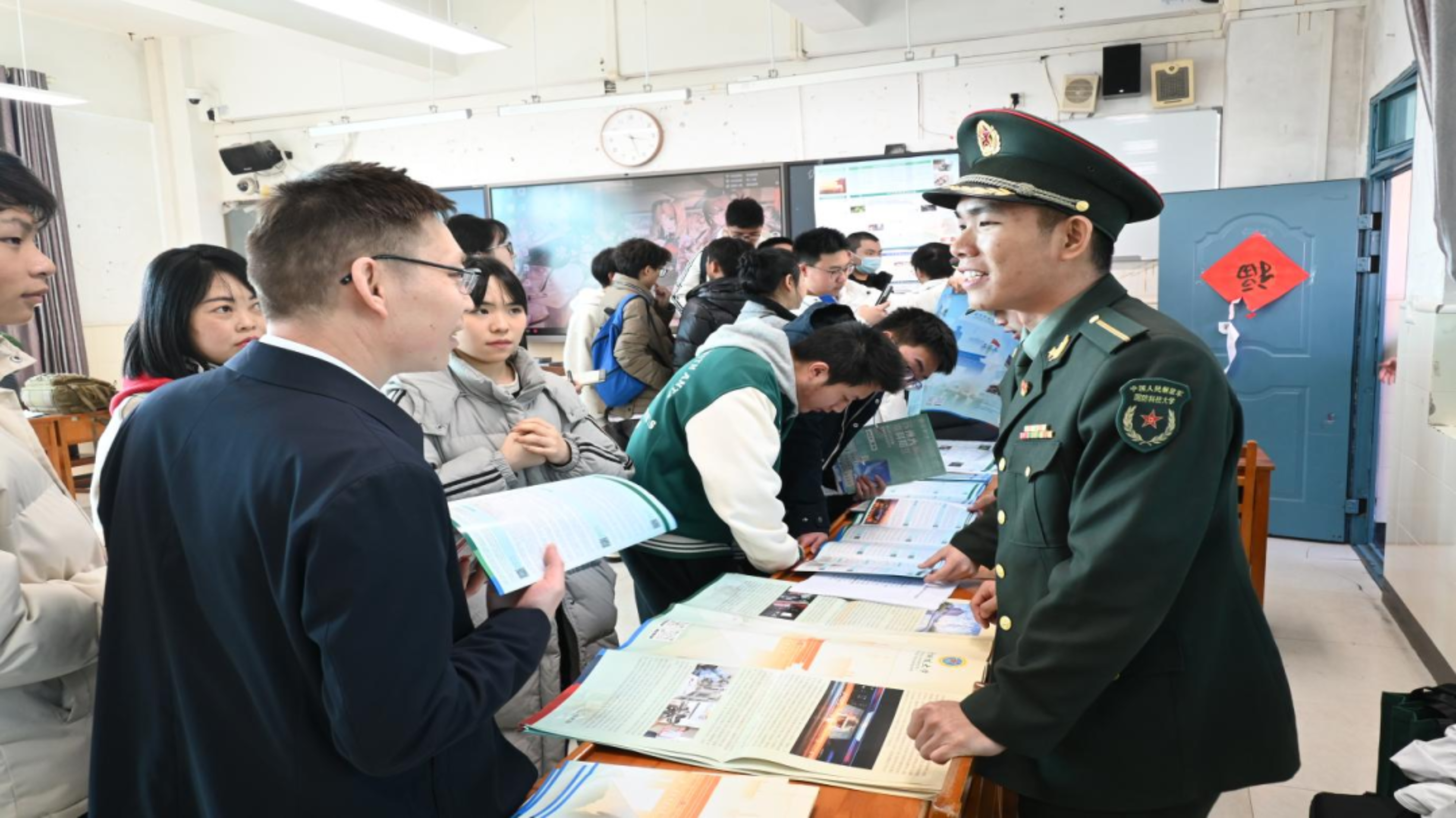1月20日,毕业于重庆市渝北中学的科大学子钟文韬返回母校中学开展了招生宣传活动。在渝北中学高三年级的教室里,钟文韬结合自己在国防科技大学的学习和成长经历,详细介绍了科大的办学特色及军校生活,鼓励同学们努力学习,积极投身国防事业。在互动环节中,钟文韬耐心解答了同学们对科大的军事课程、体能训练和日常生活的问题,并分享了自己在备考过程中的经验和心得,同时向同学们赠送了学校主题文创产品,现场气氛热烈。