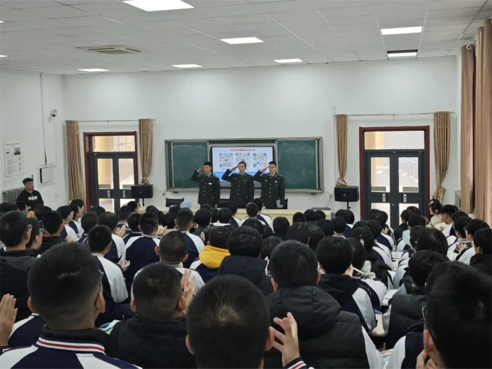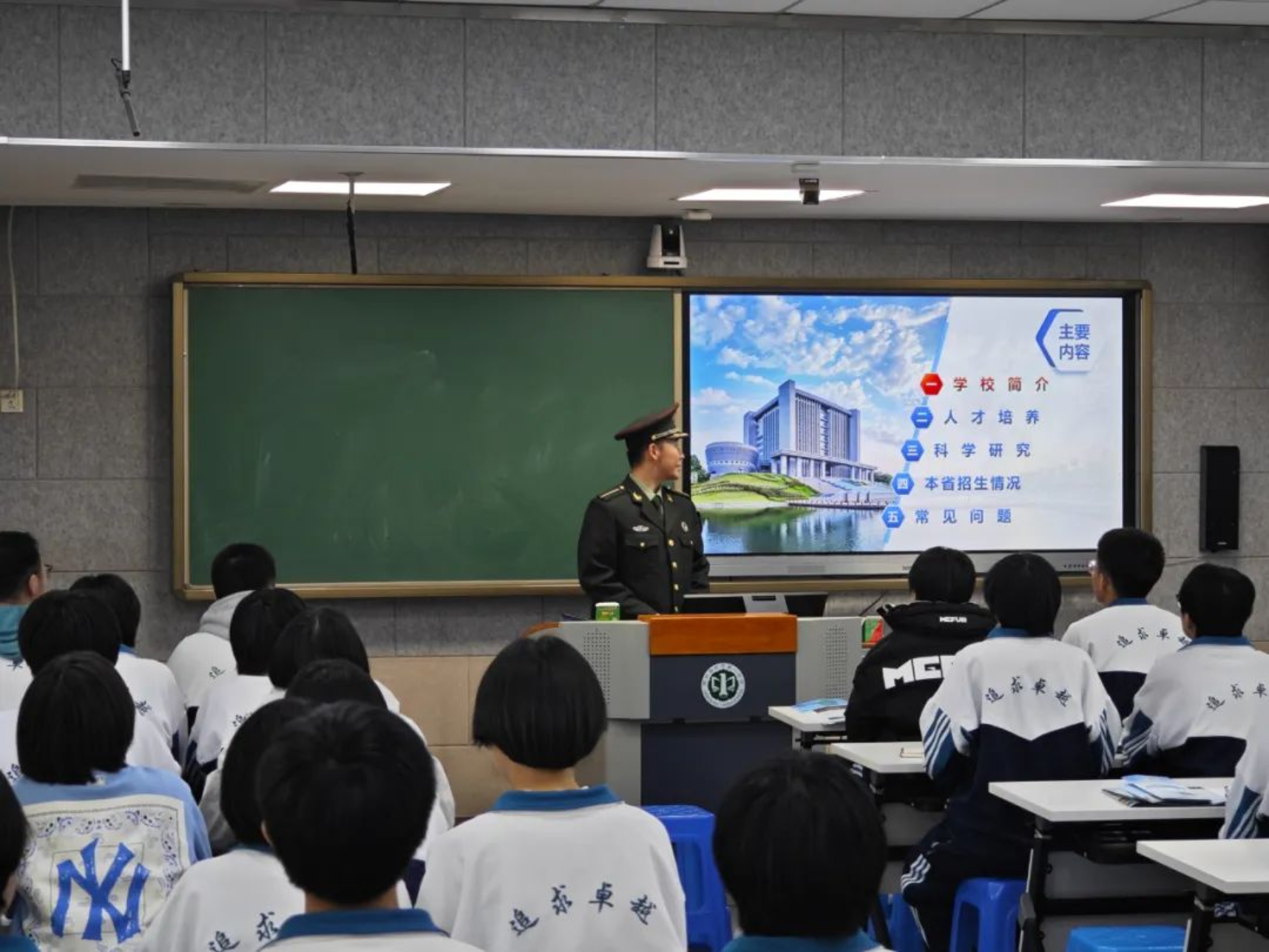 寒假期间,学校生长军官本科学员郭佳璇、李闻斌、张旭阳、陈永哲、张子晗、段旭荣组成的“高地新星”汇报宣讲团来到河北省武安市第一中学,给2500名武安一中学子带来了一场别开生面的国防科技讲座和招生宣讲,宣讲会采用“专题讲座+对点答疑”的形式,不仅拓宽了同学们的视野,更点燃了他们投身科学、献身国防的热情。