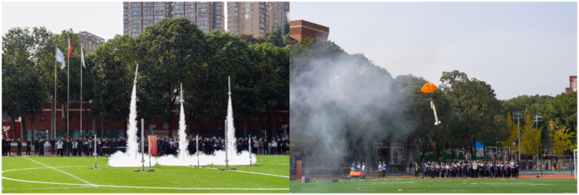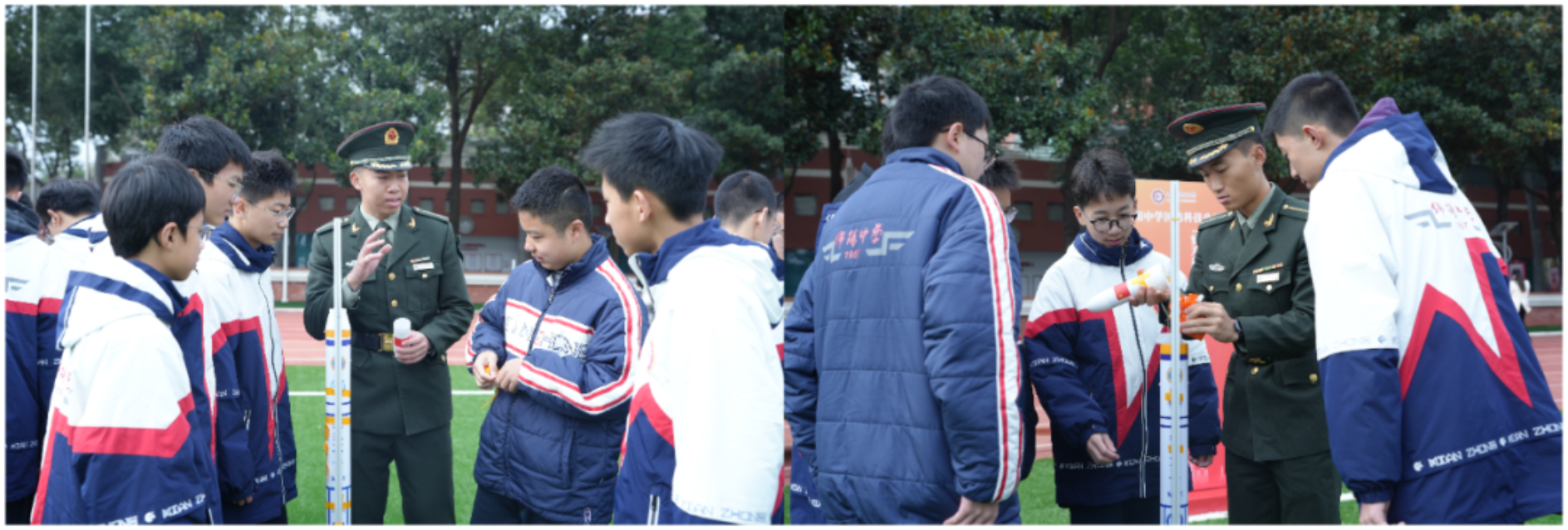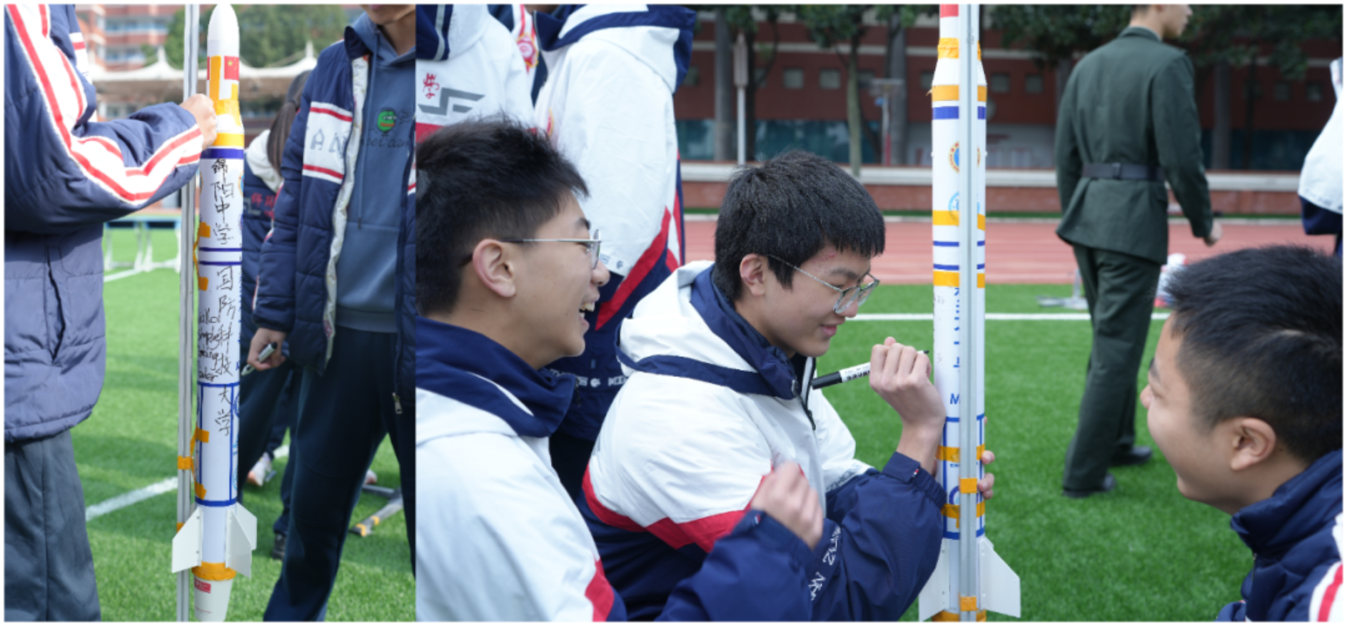 活动期间,国防科大师生与绵中同学深入交流探讨,并现场完成10枚“梦天一号”、3枚“梦天二号”火箭的组装与发射。现场悬挂的“请党放心 强国有我”“强国必须强军 军强方能国安”“精忠报国 筑我国防”三条条幅彰显了国防科技大学和绵阳中学为国家选才育才的共同使命。