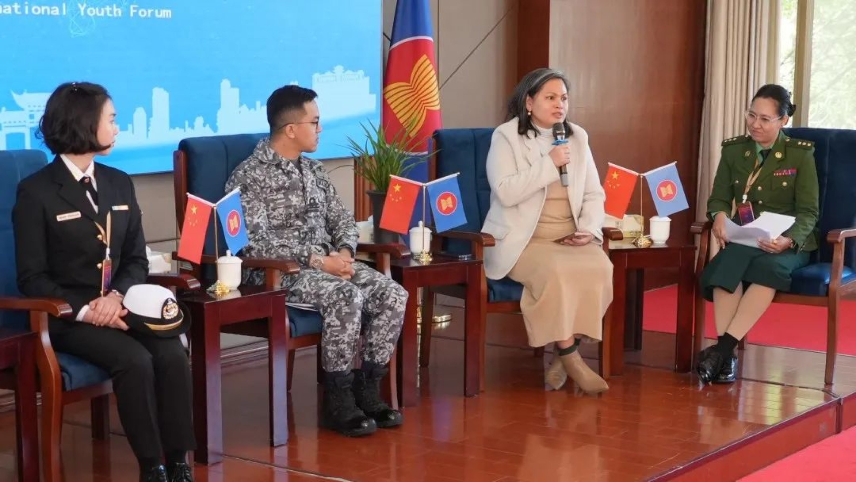 近日,由中国国防部主办、国防科技大学承办的第三次中国—东盟中青年军官友好交流活动在国防科技大学举行。来自东盟成员国、东帝汶等9个国家的20余名中青年军官、文职人员和国防科技大学师生代表共聚一堂,就构建中国—东盟命运共同体展开相关交流活动。