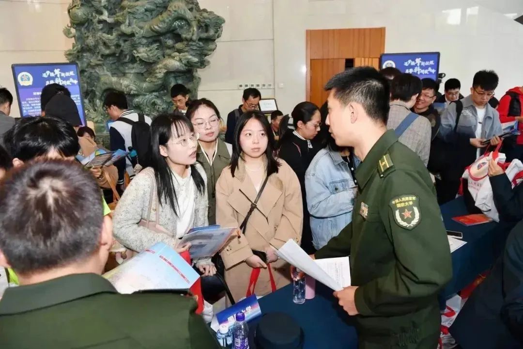 双选环节,同学们来到各单位展台前,就专业优势、岗位需求等情况与用人单位展开深入洽谈,现场氛围火热,学生求职热情高涨。越来越多的有志青年将加入强军队伍,相约高地,共创一流。