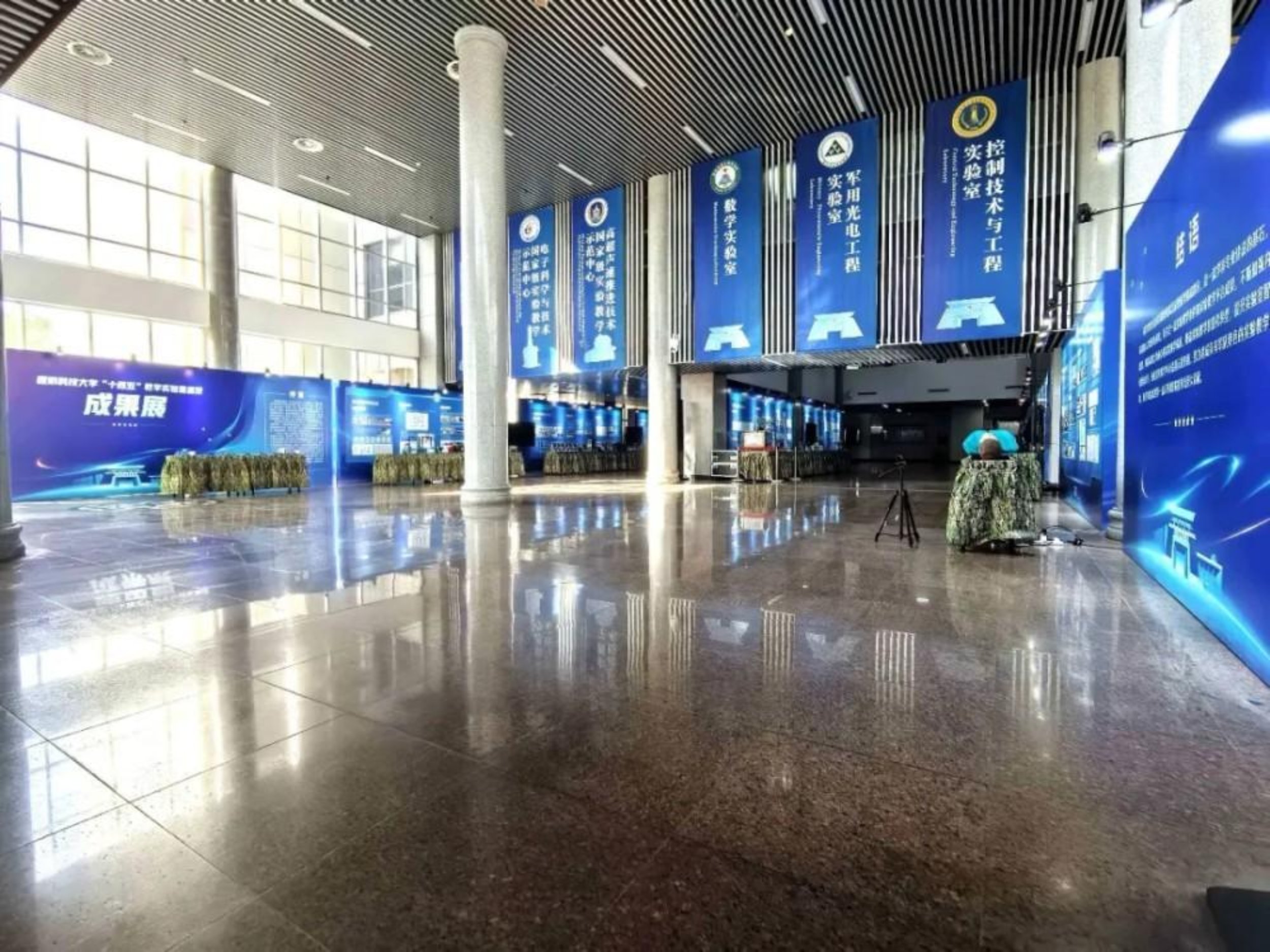 本次成果展以学院为单位,通过展板、实物、视频等多元形式,系统呈现各单位在总体建设思路、实验项目设计、教学平台搭建、人才培养成效等方面的核心内容。在这里,观众可以全面了解 “课堂直通战场”“虚实一体、战技结合”“课赛研融合”“认知-基础-系统-创新-应用” 贯通等特色实践教学创新成果。展览将持续至本学期末,展出期间保障人员每日在岗值守,诚邀全校师生员工组团或个人莅临参观交流。