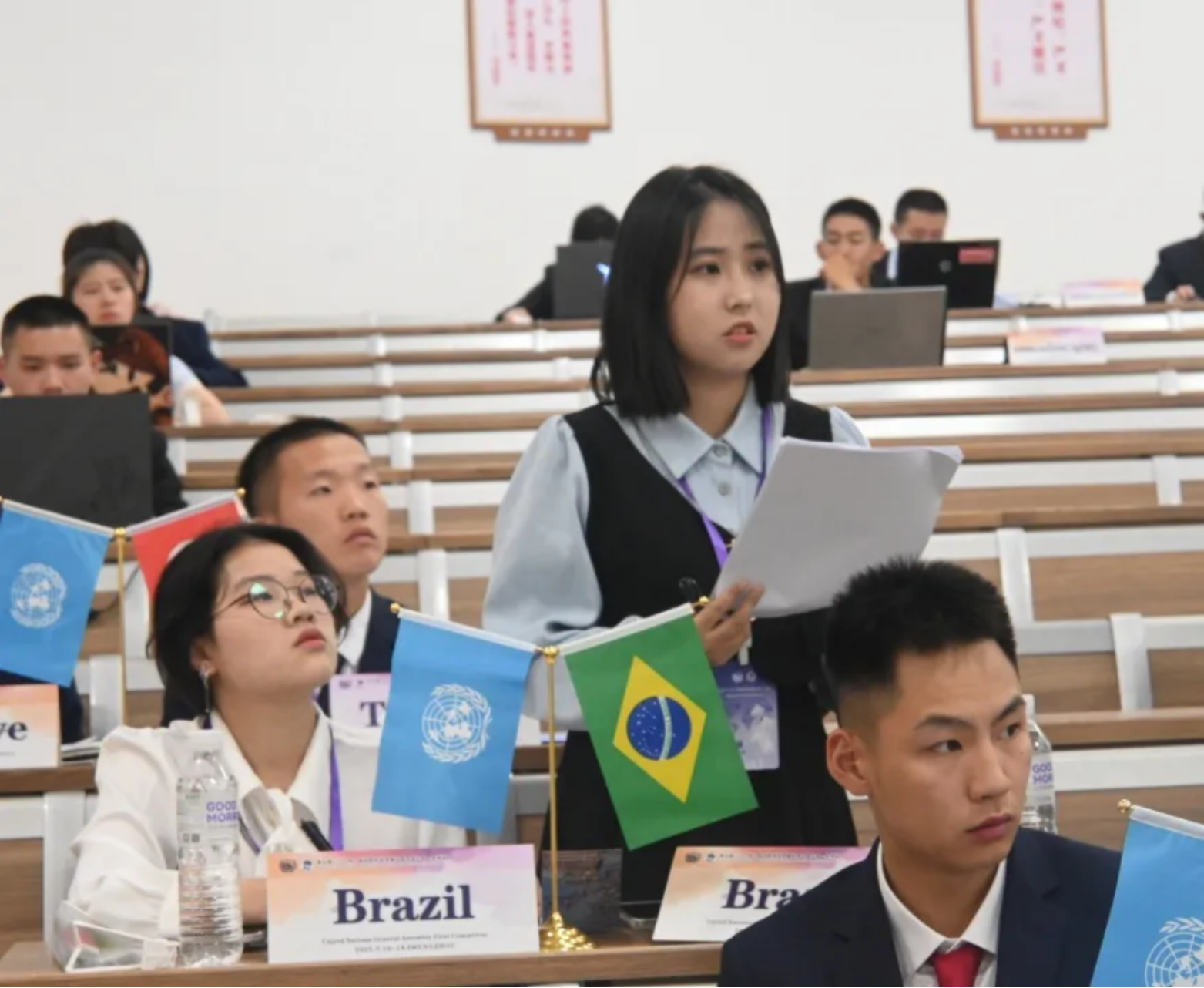 在学校老师的指导带领下,我校学员会前深入研究联合国议事规则,剖析国际热点案例,撰写学术文件,组织模拟磋商。会议期间,我校代表精心准备发言稿,条理清晰,从容不迫地阐述所代表国家的立场,展示了高水平的外交谈判能力。