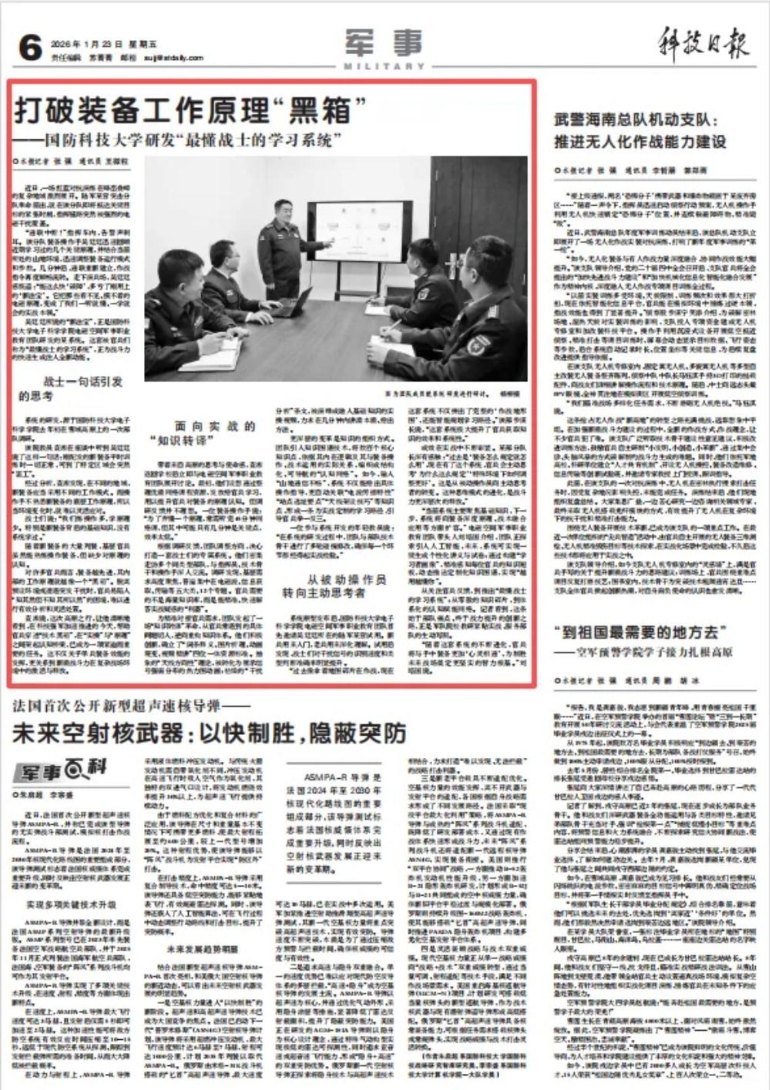 从关注官兵反馈,到推出“最懂战士的学习系统”;从零散的知识碎片,到体系化的认知赋能网络。记者看到,这条始于部队痛点、终于战力提升的创新之路,正是军队院校教研紧贴实战、服务部队的生动写照。
