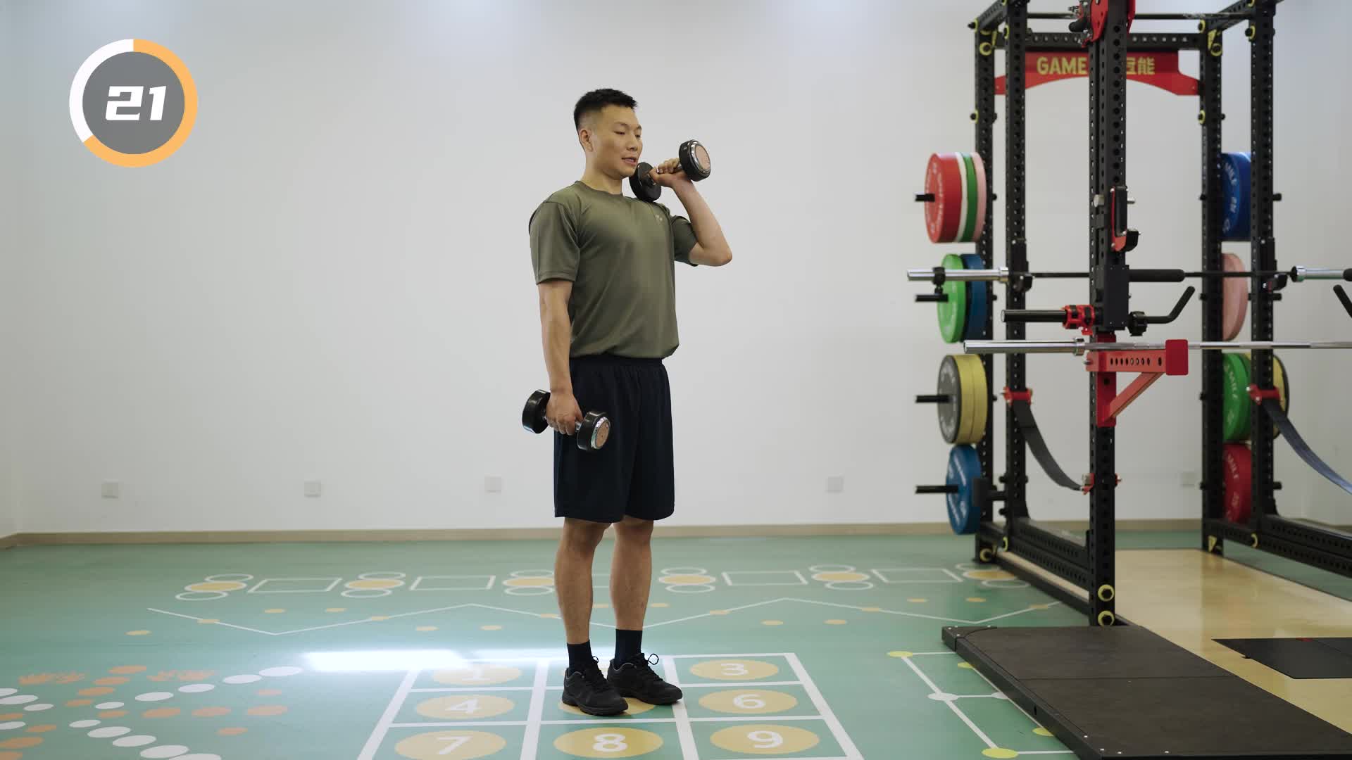 3-74 负重退步剪蹲