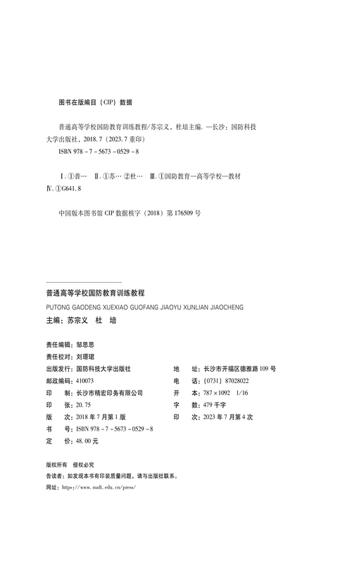 书名:普通高等学校国防教育训练教程