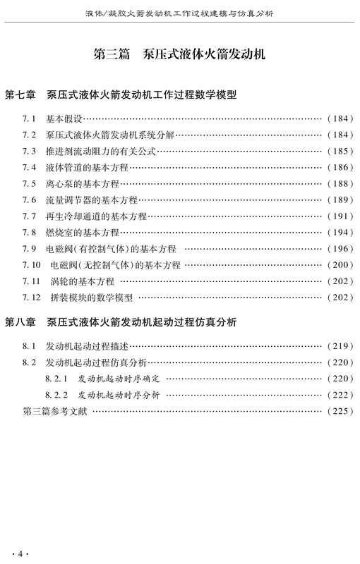《液体\凝胶火箭发动机工作过程建模与仿真分析》以空间推进系统、凝胶推进系统、泵压式液体火箭发动机为研究对象,建立和阐述了液体/凝胶火箭发动机工作过程的理论、动态模型和数值计算方法。第一篇建立空间推进系统工作过程数学模型,包括气瓶数学模型、电爆阀数学模型、减压阀数学模型、贮箱数学模型、液体管道数学模型、孔板及过滤器数学模型、电磁阀数学模型、充填管道数学模型和推力室数学模型,仿真分析了空间推进系统启动、稳态和关机过程的特性。第二篇建立凝胶推进系统工作过程数学模型,仿真分析了凝胶推进系统流量分配规律、水击特性和推力调节特性。第三篇建立泵压式液体火箭发动机工作过程数学模型,对泵压式液体火箭发动机起动过程特性进行仿真分析。上述理论或动态模型反映了当前液体/凝胶火箭发动机工作过程的新研究成果。