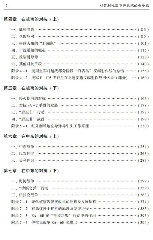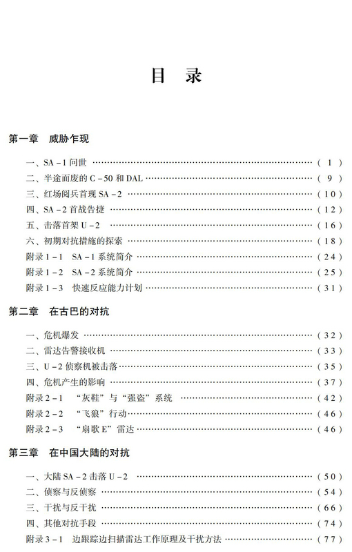 本书按事情发展的先后顺序将威胁出现时期、古巴导弹危机、侦察中国大陆、越南战争、历次中东战争、海湾战争、科索沃战争及伊拉克战争中对抗的一些重要典型有影响的事件重现出来,供大家了解和参考。本书较为完整地记述了整个历史进程重要事件和技术发展及战术应用,对相关领域研究人员和军事爱好者有较大的参考价值。