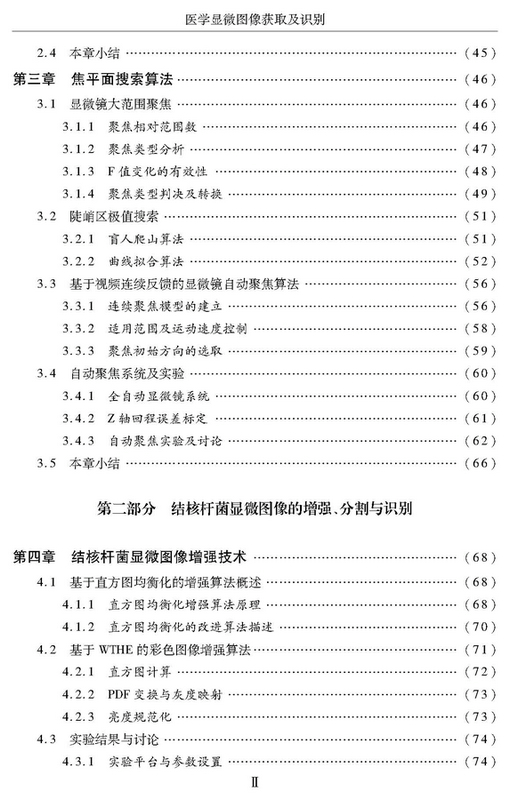 本书主要阐述医学显微图像获取及识别的相关原理及应用,包括两大板块内容:普通光学显微镜的自动聚焦,以及细胞、细菌等的识别问题。在识别部分,本书重点以结核杆菌的检测识别以及宫颈液基细胞学识别为例,介绍了显微图像分割、增强、特征抽取、分类器设计等内容。本书适合从事图像处理、生物医学工程等相关专业的研究生、工程师阅读。