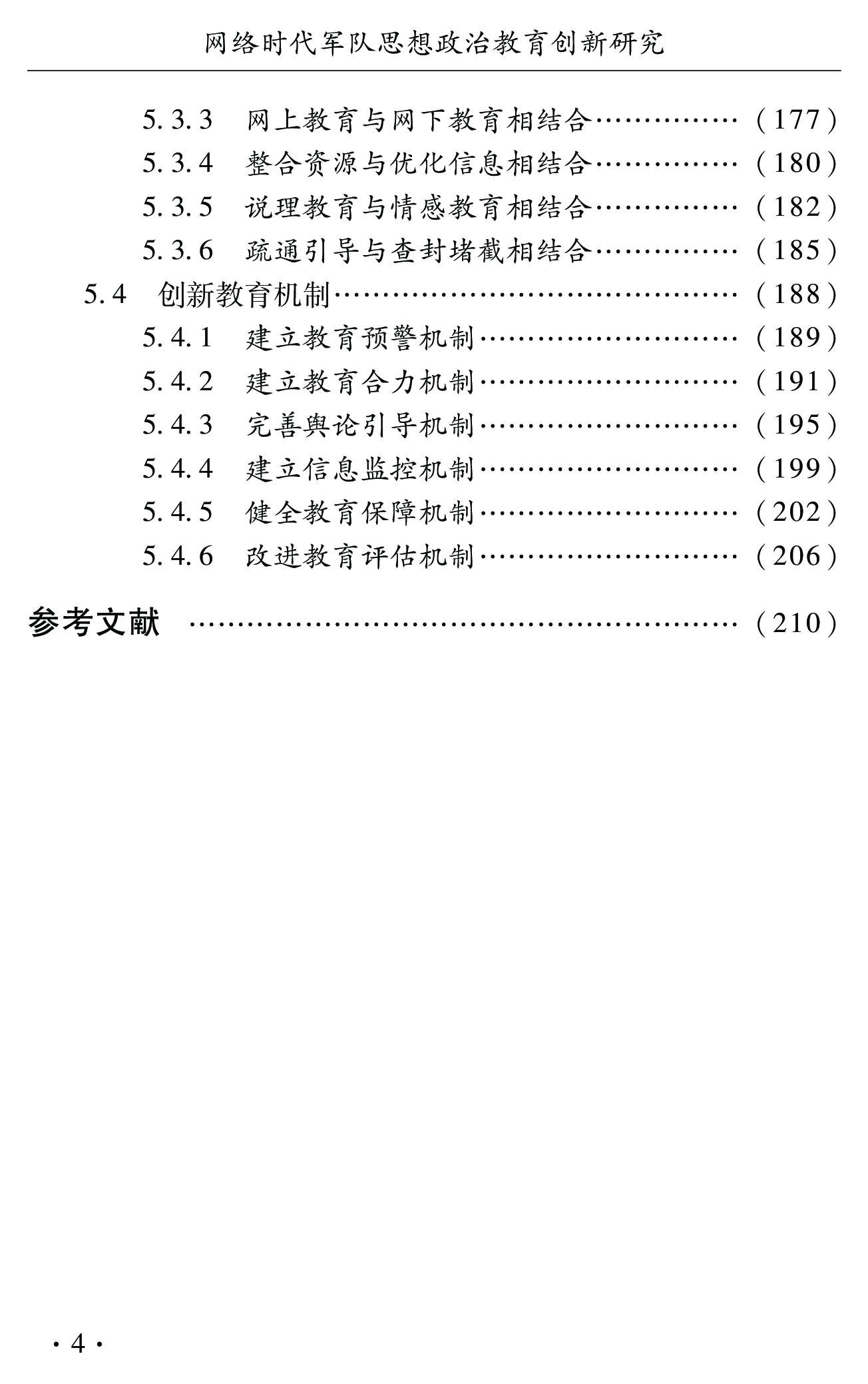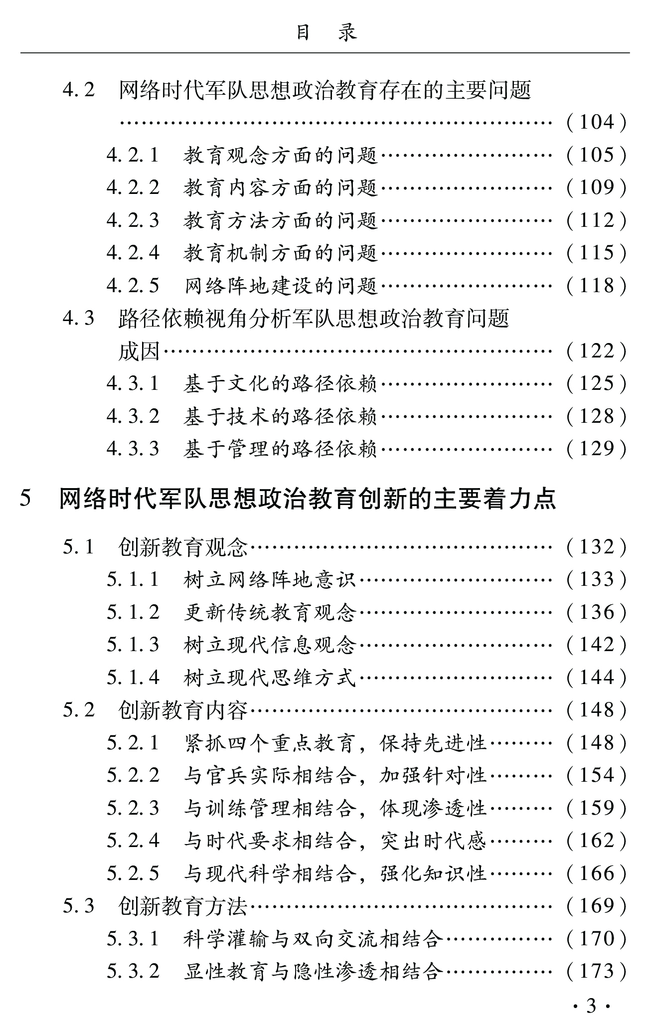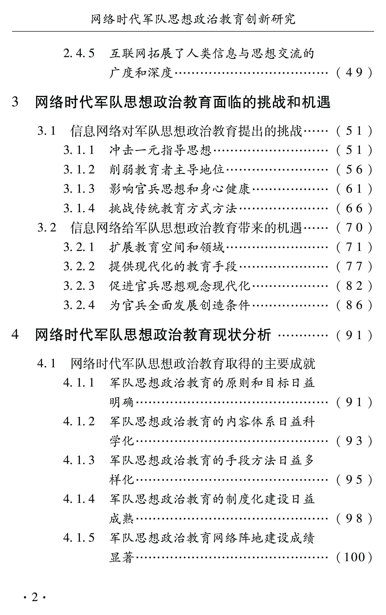 本书从悖论的视角对信息网络的特征进行深入的分析,为把握时代特征打下基础;以辩证的眼光分析信息网络给军队思想政治教育带来的挑战和机遇,为创新研究奠定逻辑起点;对网络时代军队思想政治教育的现状进行分析,并引入路径依赖理论分析存在问题的深层次原因,为创新研究提供现实依据;最后系统地探讨网络时代军队思想政治教育创新的对策措施。