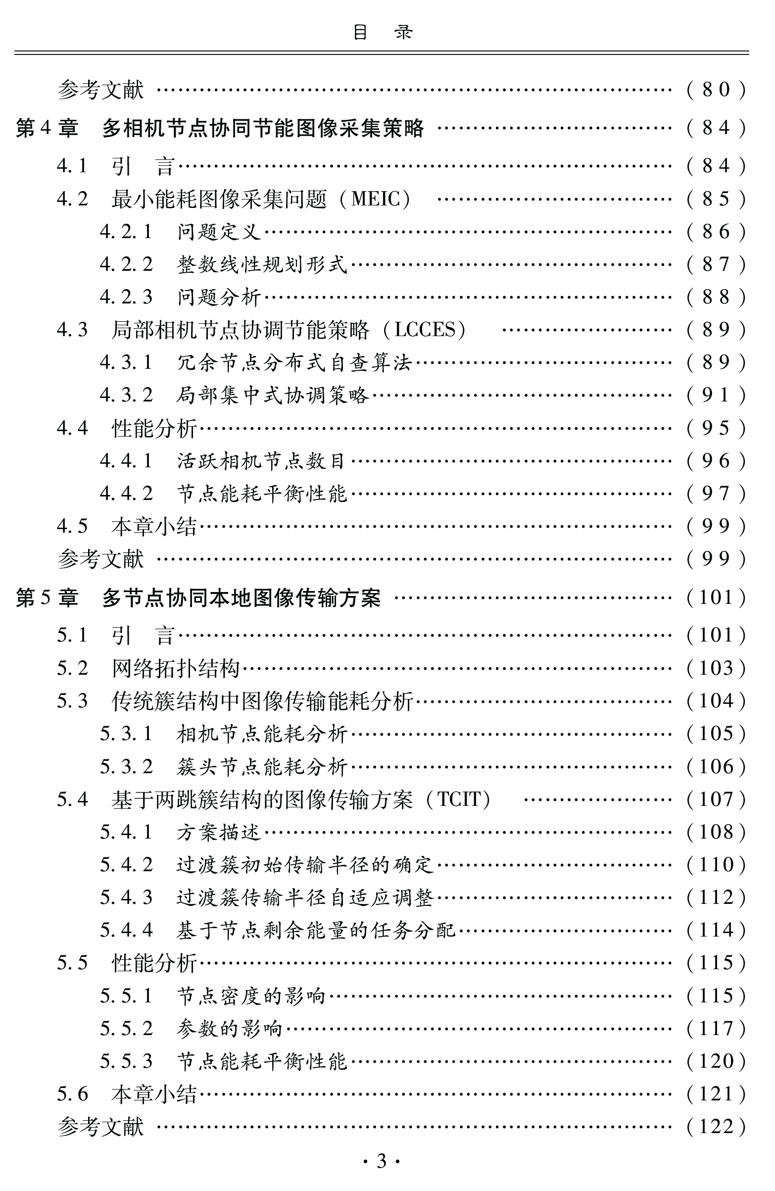 专著针对无线多媒体传感器网络中单节点处理、存储能力和能量受限等问题,探讨了如何利用多节点协同技术,以最大化网络生命周期为目标,实现监测区域中感兴趣事件图像的采集和压缩;针对事件驱动型相机节点唤醒、最小能耗图像采集、能耗均衡图像传输以及低能耗图像压缩等关键问题,提出了有效的多节点协同解决方案,对于推进无线多媒体传感器网络相关技术的研究及其实用化,具有一定的理论意义和应用价值。