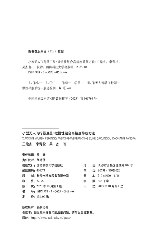 书名:小型无人飞行器卫星/微惯性组合高精度导航方法