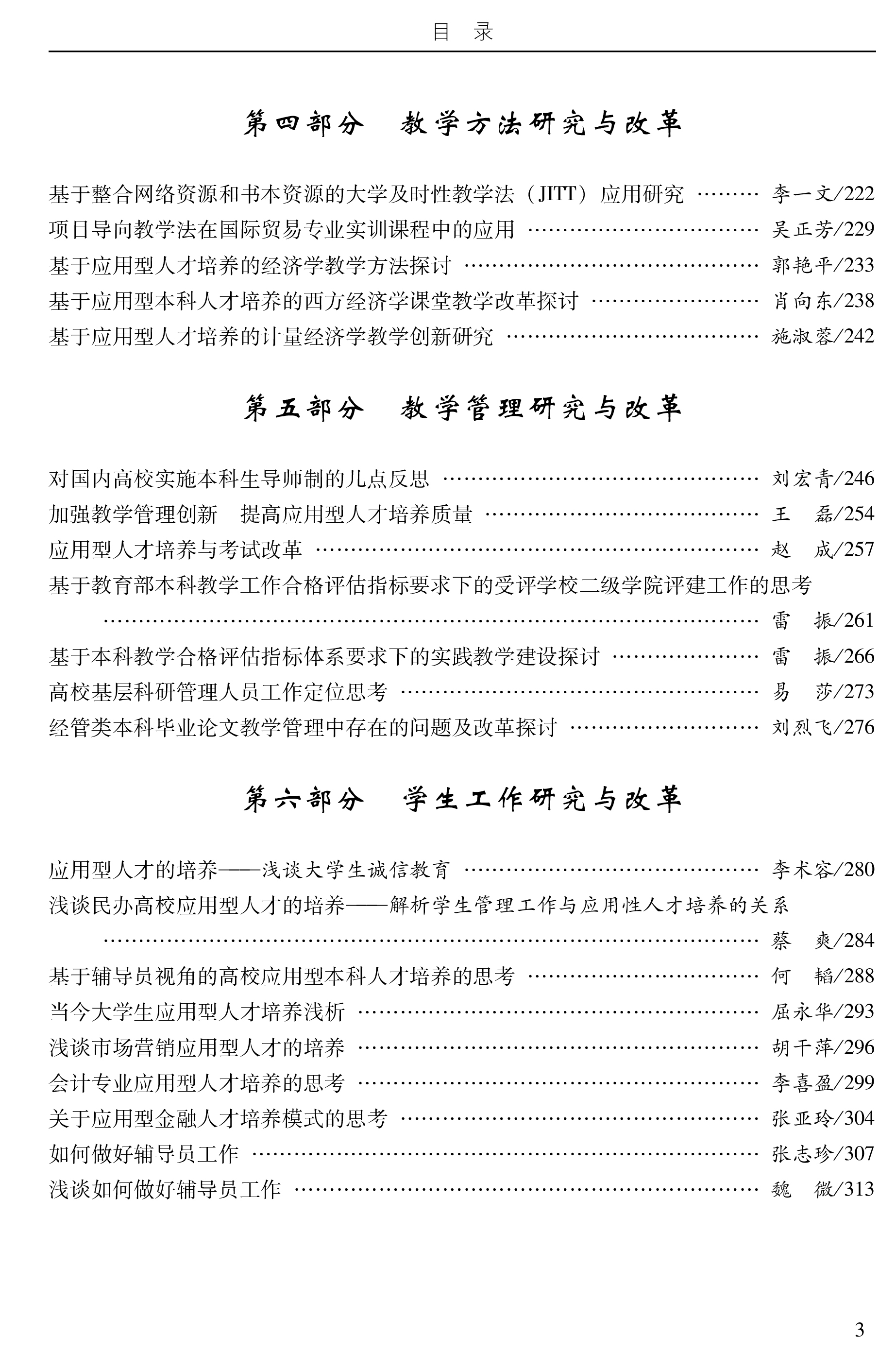 近年来,湖南涉外经济学院商学院围绕商科专业本科应用型人才的培养问题进行了比较深入的研究与改革,取得了一系列教育教学研究与改革成果,现择其主要研究成果结集出版,以飨读者。全书分为七个部分:第一部分,专业建设研究与改革,主要探讨了商科专业本科应用型人才专业建设与模式的优化与创新问题;第二部分,课程建设研究与改革,主要探讨了商科专业本科应用型人才培养的专业课程开发及内容优化问题;第三部分,实践教学研究与改革,主要探讨了商科专业本科应用型人才实践能力培养的改革与创新问题;第四部分,教学方法研究与改革,主要探讨了商科专业本科应用型人才培养过程中教学方法改革与创新问题;第五部分,教学管理研究与改革,主要探讨了商科专业本科应用型人才培养过程中教学管理模式的改革与创新问题;第六部分,学生工作研究与改革,主要探讨了商科专业本科应用型人才培养过程中学生方法的改革与创新问题。
