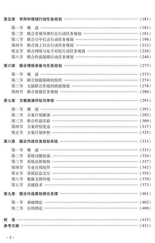 本书以联合作战指挥纲要和联合作战任务规划需求论证为依据,借鉴国内外作战任务规划相关研究成果,以联合火力打击作战任务规划为重点,进行了联合作战任务规划问题的研究探讨,旨在为联合作战任务规划系统研发、使用和院校教学提供参考,抛砖引玉。主要内容为方案计划制订的主要流程方法、任务规划辅助决策需求、任务规划系统功能模块设计等。
