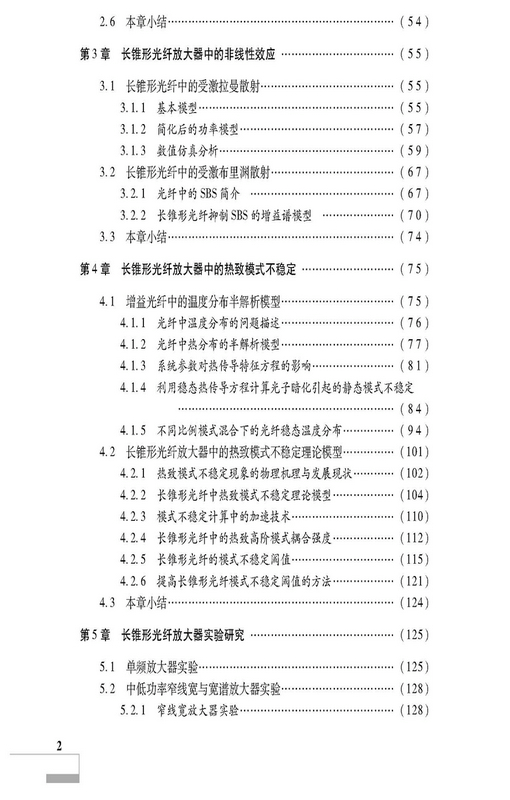 本书以长锥形掺镱光纤放大器为研究对象,阐述了高能激光技术中基于锥形增益光纤的高功率光纤激光放大器技术。首先回顾了光纤激光的发展历史以及锥形光纤的研究历程,然后分别基于光线追迹法和特征模式分解法推导了长锥形光纤中的模式耦合理论,并利用非线性薛定谔方程对长锥形光纤中的受激拉曼散射和受激布里渊散射进行了理论建模和仿真,利用速率方程和稳态热传导方程对长锥形光纤中的热致模式不稳定效应开展了理论研究,介绍了长锥形光纤放大器的典型实验结果。