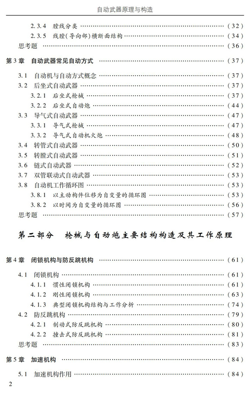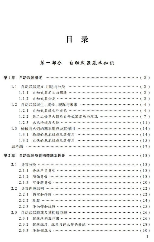 本书以武器的机械和机构为主线,较系统地介绍了自动武器的结构构造及工作原理。主要内容包括:自动武器发展简史、身管内膛构造基本理论、自动武器的自动方式、闭锁机构、加速机构、供输弹机构、退壳机构、击发发射和保险机构、辅助装置以及现代半自动火炮的炮闩、反后坐装置、火炮架体等基本结构构造及工作原理。书中部分较难的机构给出了机构简图,以帮助理解。在每章之后有10道以上思考题,读者可通过完成这些思考题来掌握本章的重点内容。