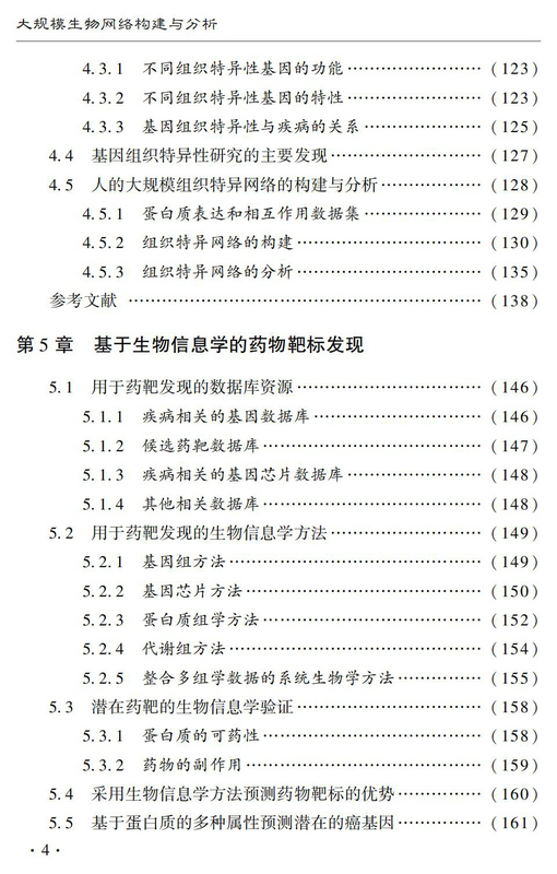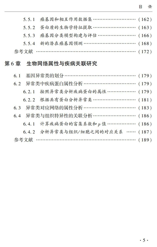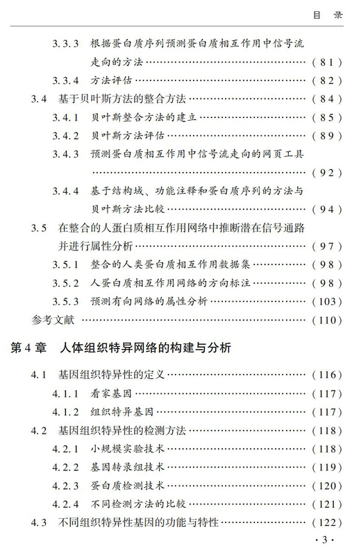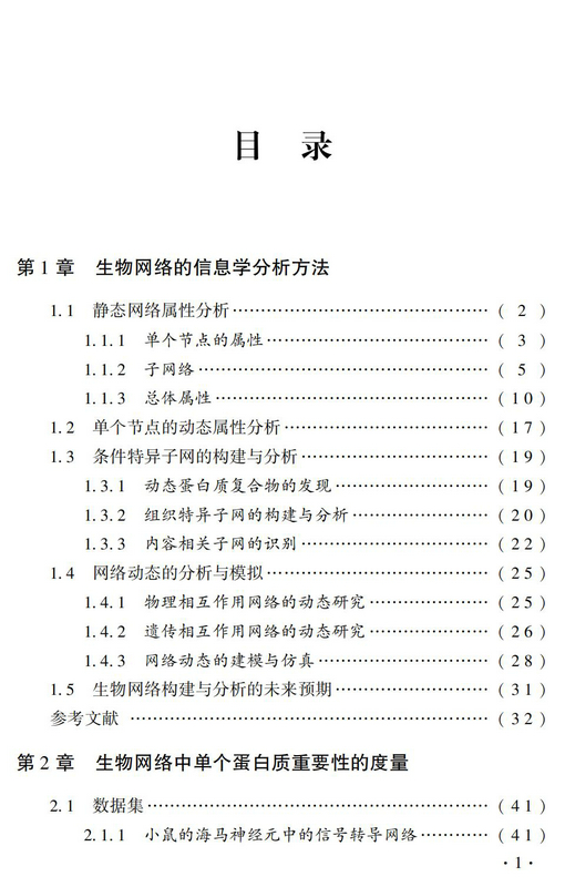 全书内容包括六章,第一章介绍了生物网络分析的通用生物信息学方法,第二章提出了一种新的指标用于度量生物网络中节点的重要性,第三章描述了多种生物信息学方法用于预测信号转导网络中的信号流走向,第四章讨论了人体组织特异网络的构建和分析方法,最后两章给出了生物网络与疾病相关的研究成果。