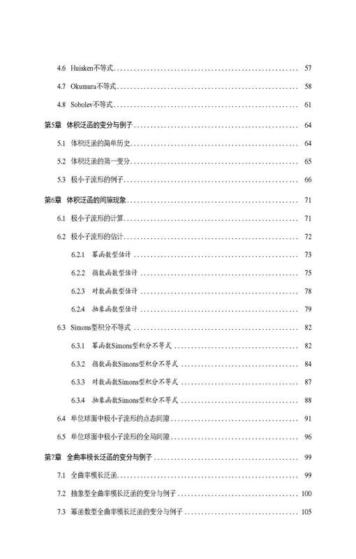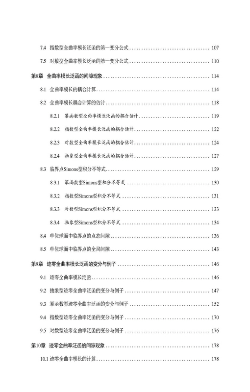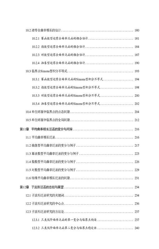 子流形几何是微分几何的重要分支,在自然科学和工程技术中有重要应用。子流形的性质与其上的泛函有密切关系。本书通过对子流形全曲率、迹零全曲率、平均曲率等几何量的研究,构造了几类具有鲜明几何意义的泛函,计算了它们的第一变分公式,通过代数方程和微分方程构造了它们的临界点例子,通过精巧的估计,建立了临界点的众多积分不等式,以此为基础,发展了一系列子流形几何中非常奇异的点态与全局间隙定理。本书可供纯粹数学以及理论物理特别是变分力学方向的研究生及科研工作者参考。