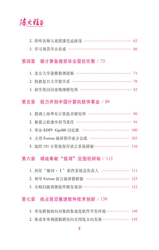 主要记述我国计算机软件事业的开拓者之一、银河Ⅰ巨型计算机的重要组织者和参与者、孕育银河精神的重要亲历者、中国理论计算机科学事业的先行者、计算机学科建设发展的推动者、计算机软件人才培养的领军人物、已故中国工程院院士陈火旺教授辉煌的一生。书稿以传主经历的重要时期、重要阶段,参与的重大活动、重要事件,完成的重大工程、重大任务等来确定内容,多侧面、多角度、全方位记述陈火旺奉献国防科技和国防教育事业的感人经历,以及为我国计算机学科发展、软件技术创新和超算技术发展做出的历史性贡献。