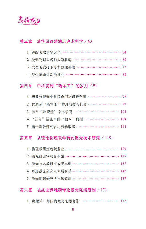 主要记述我国著名的理论物理学家、激光物理专家、激光陀螺领域领军人物、已故中国工程院院士高伯龙的人生经历。生动反映了高伯龙生逢乱世,却笃信科学救国;不畏艰险,让我国的激光陀螺在世界发出耀眼的光芒;与世无争,淡泊名利,一蓑烟雨任平生;面对科学,唯真理是举,唯求实是真,不迷信权威,永远盯着高峰;面对攻关,白手起家、艰辛探索;面对生活,勤俭简朴、甘于寂寞,以执着追求的永恒精神、艰苦奋斗的不变本色、永不止息的持续斗志,不断攀登激光陀螺技术的高峰,为我国自主研制激光陀螺开辟了一条成功之路。