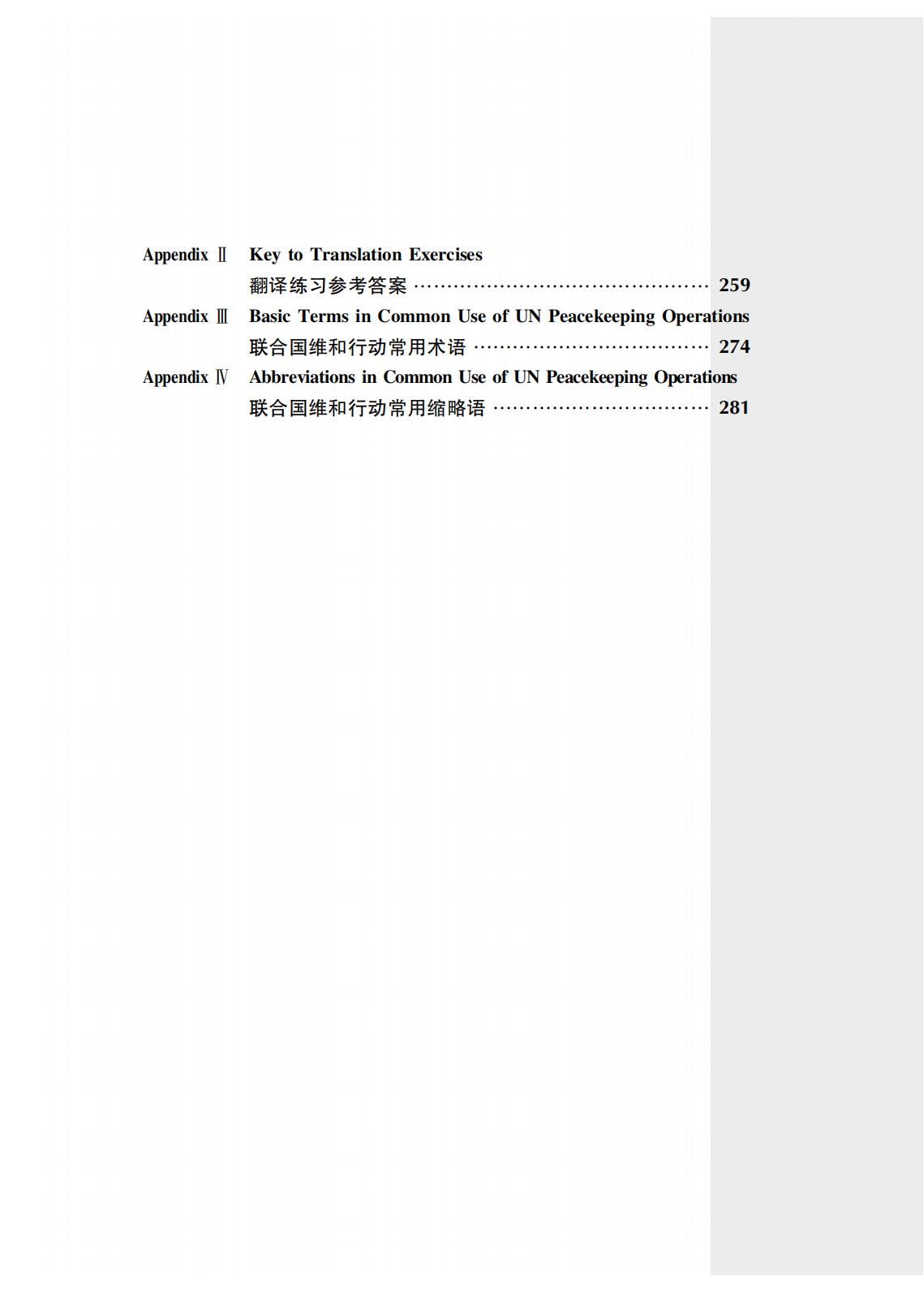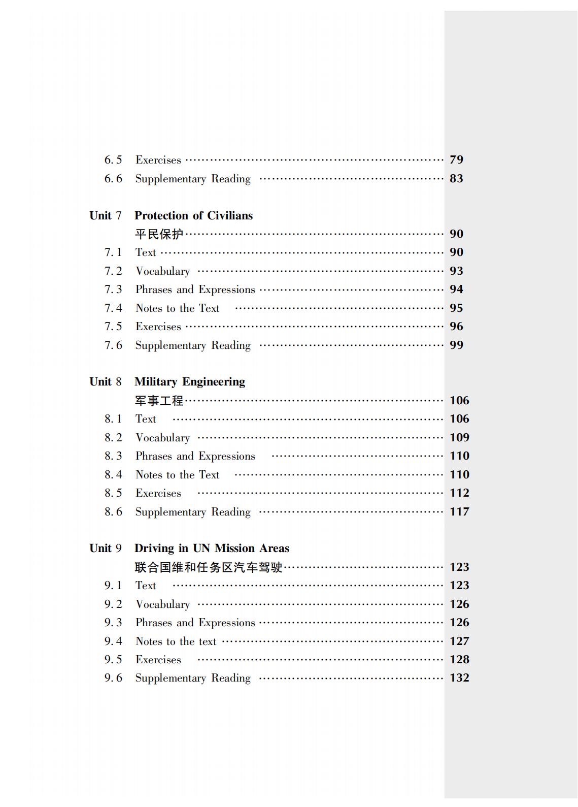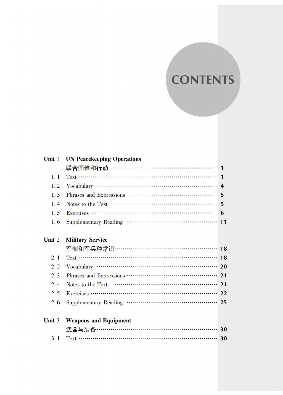 《维和部队高级英语教程》是“联合国维和行动培训系列教材”之一,由国防科技大学国际关系学院刘钊教授组织编写。内容主要涉及联合国维和行动、军制和军兵种常识、武器与装备、军容风纪和队列动作、军事地形与导航、巡逻与安全检查、平民保护、军事工程、联合国维和任务区汽车驾驶、急救与防病措施、谅解备忘录与分队自携装备核查以及国际军事交流等。主要用于分队指挥及骨干人员的英语强化培训,经过该课程的系统训练,受训学员不仅能提高自身英语水平,还能增强在联合国维和任务区执行涉外联络和英语交流能力,并可作为全军维和部队官兵遂行使命任务和应对各类复杂情况的重要参考书,实用性强。其所精选的内容已经在全军维和培训中使用多年,在维和人才能力素质培养中发挥了重要作用。