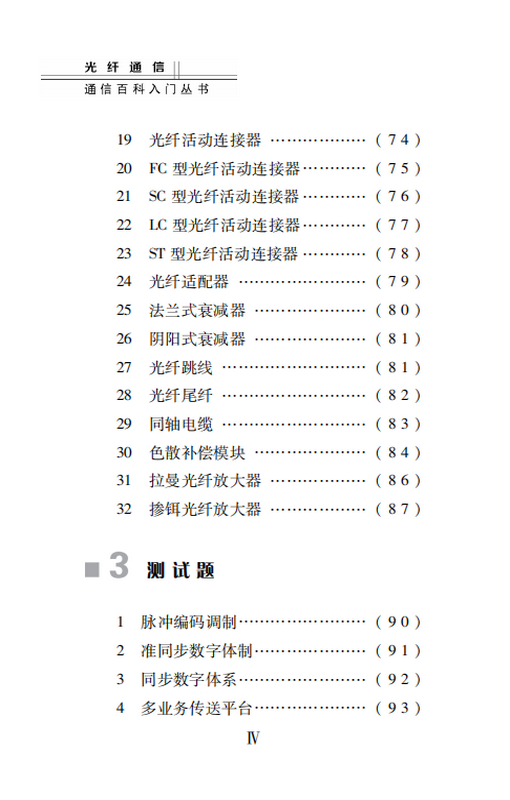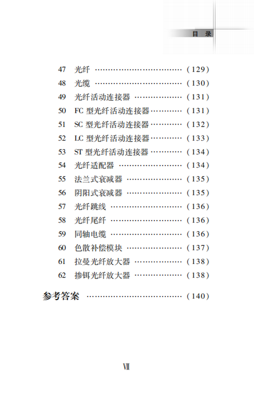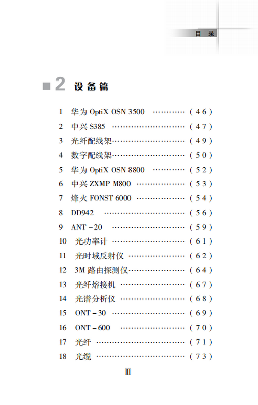 全书分为三部分,其中原理篇聚焦光纤通信的技术体制、国际标准、协议和系统构成,归纳总结了30个知识点;设备篇围绕光纤传输设备、附属设备、仪表器件等归纳总结了32个知识点,文字精要浅显,并附有相关图片,帮助读者快速入门;测试题针对原理和设备的相关知识精心选取,便于读者自我测试提高。本书既可作为光纤通信专业的入门教材,也可为从事光纤通信工作的相关人员提供参考。