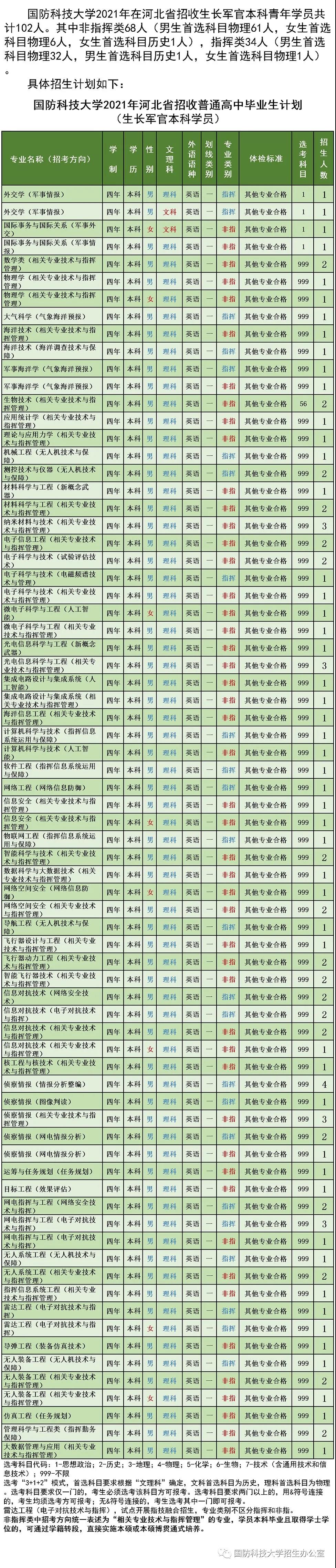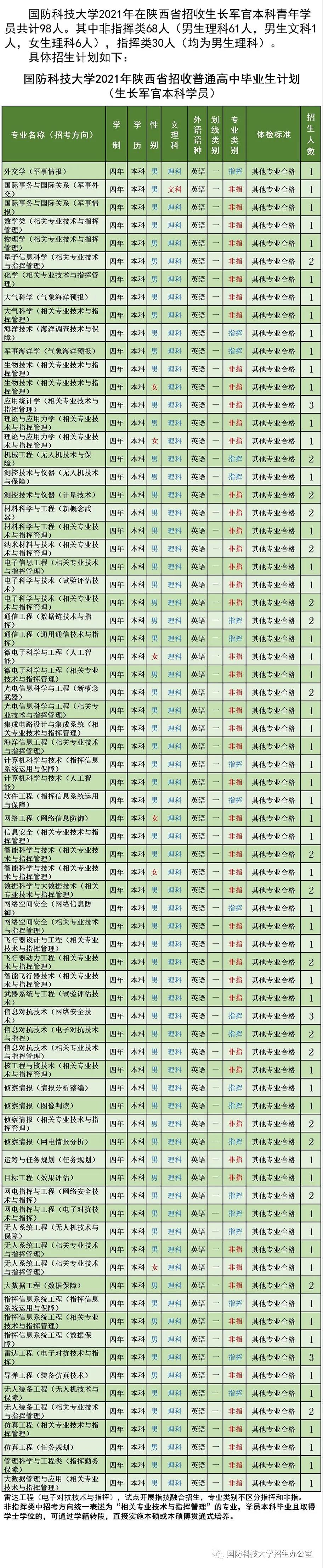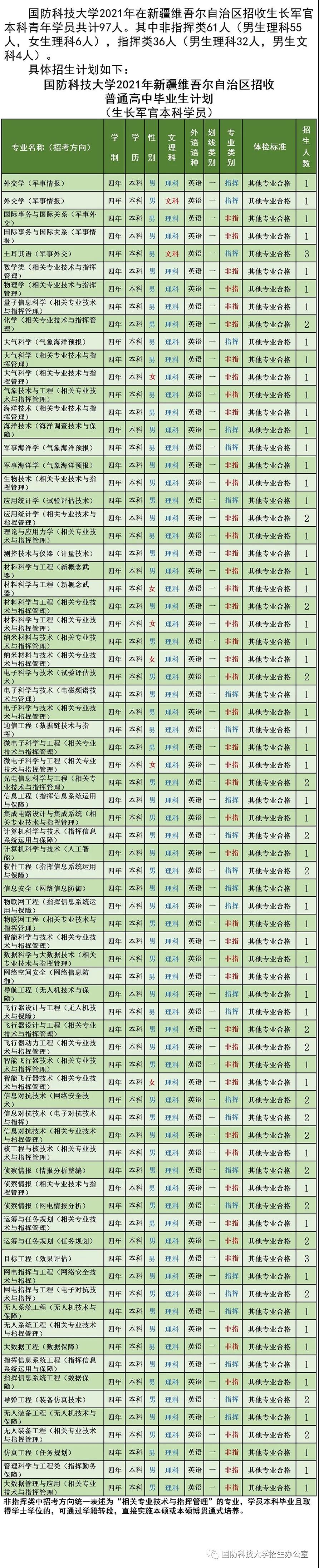国防科技大学2021年在全国30个省份(市、自治区,下同)面向普通高中毕业生招收2400名生长军官本科学员。其中: