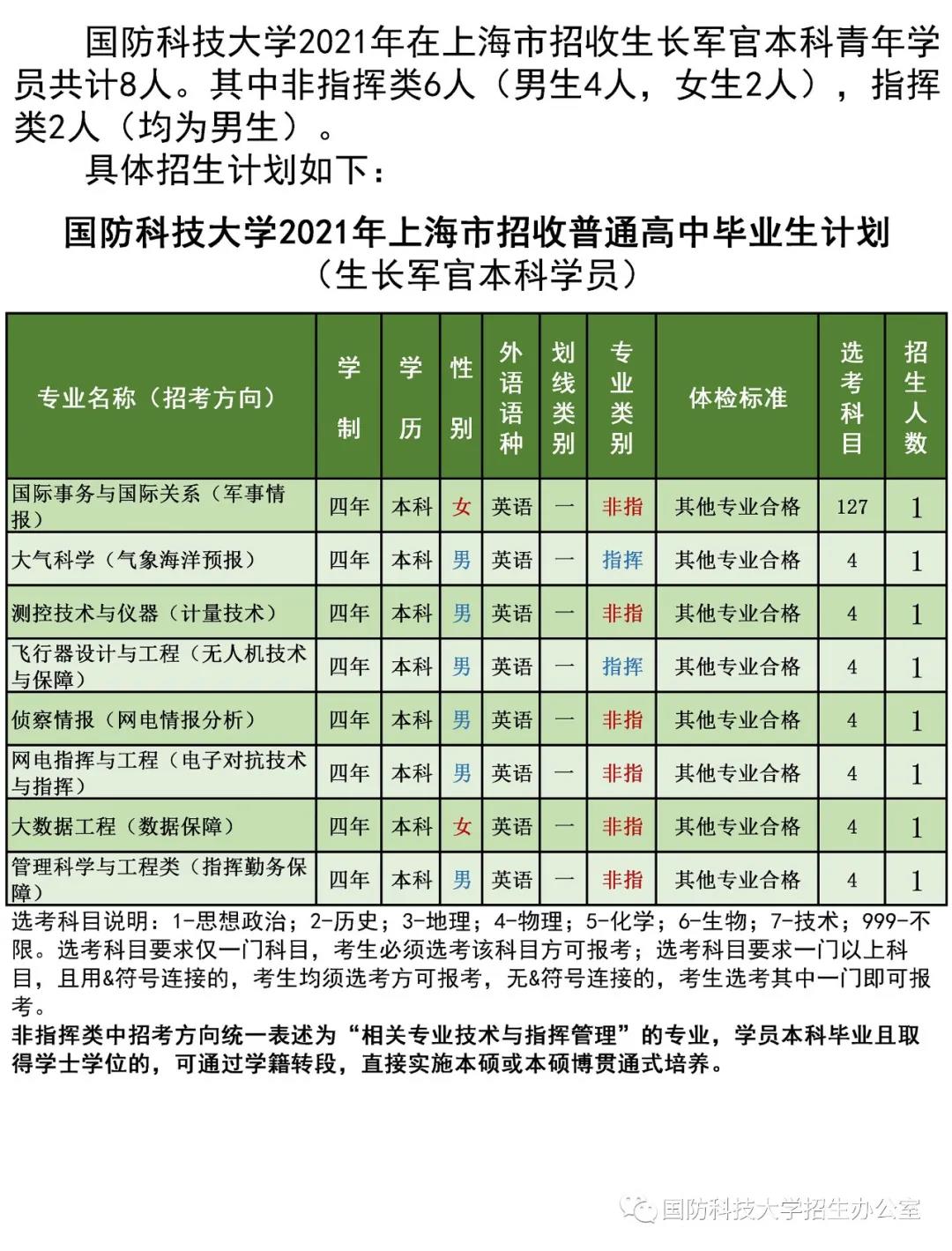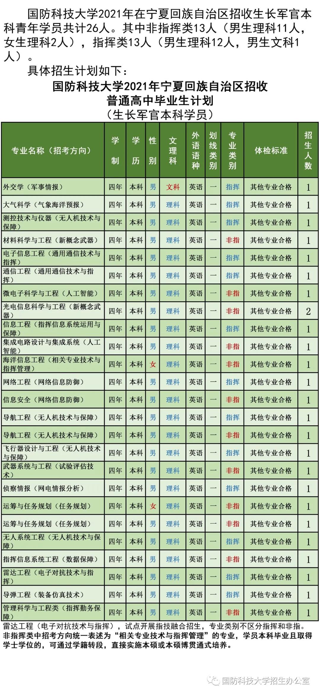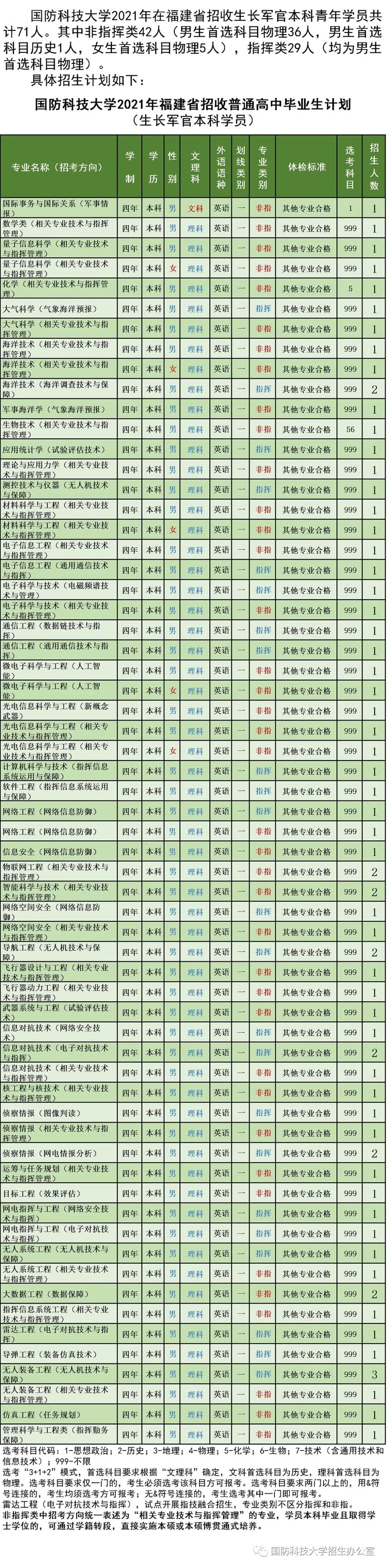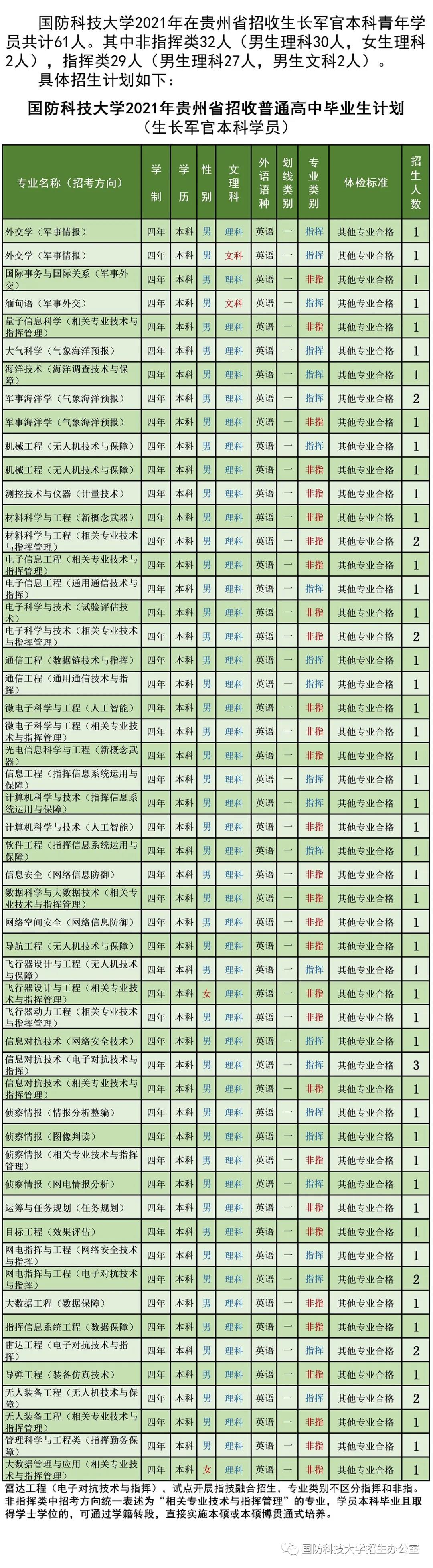 国防科技大学2021年在全国30个省份(市、自治区,下同)面向普通高中毕业生招收2400名生长军官本科学员。其中: