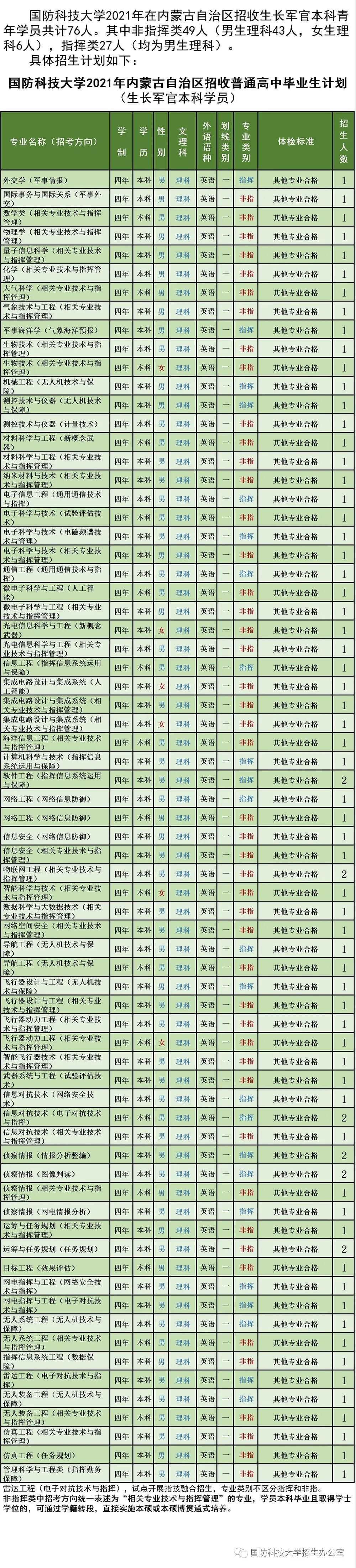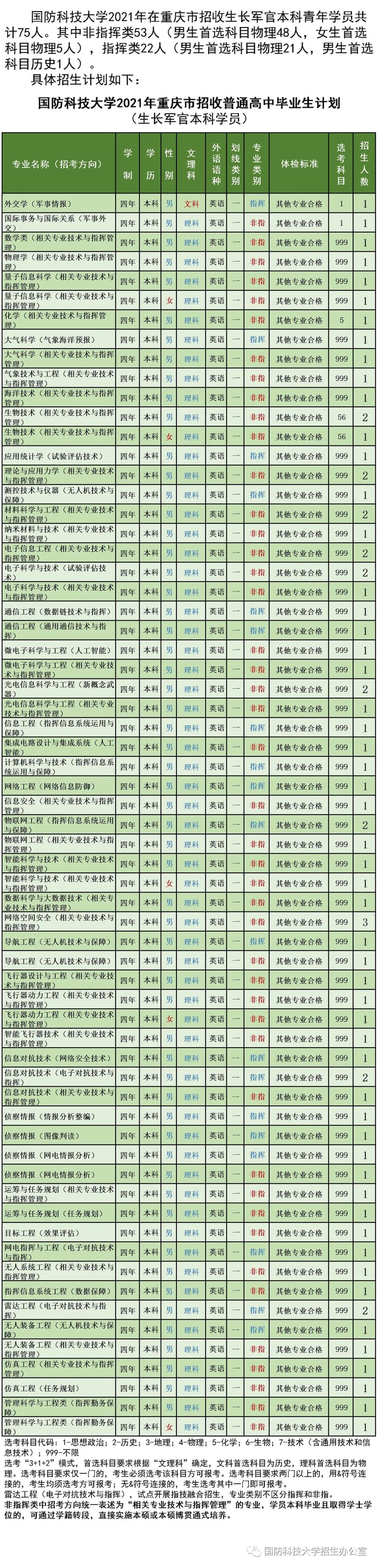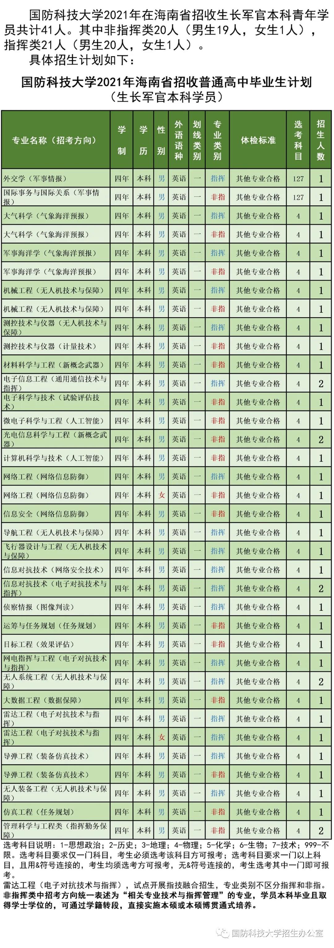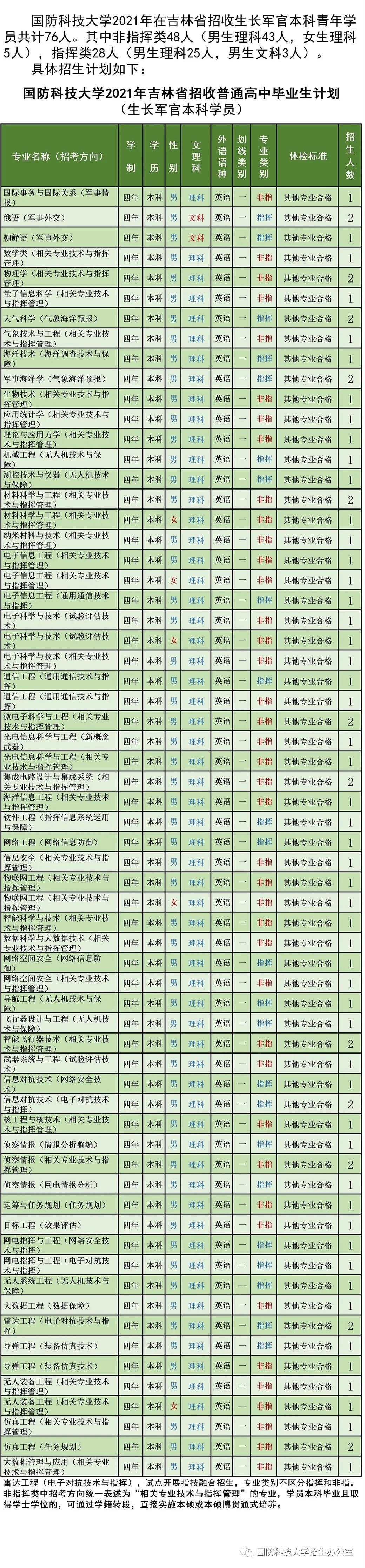 经教育部和军委机关批准,国防科技大学2021年招收普通高中毕业生计划(生长军官本科学员)正式发布。敬请广大考生及家长关注。