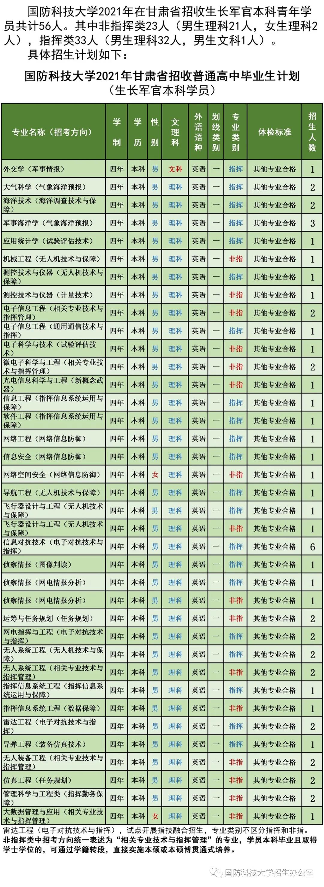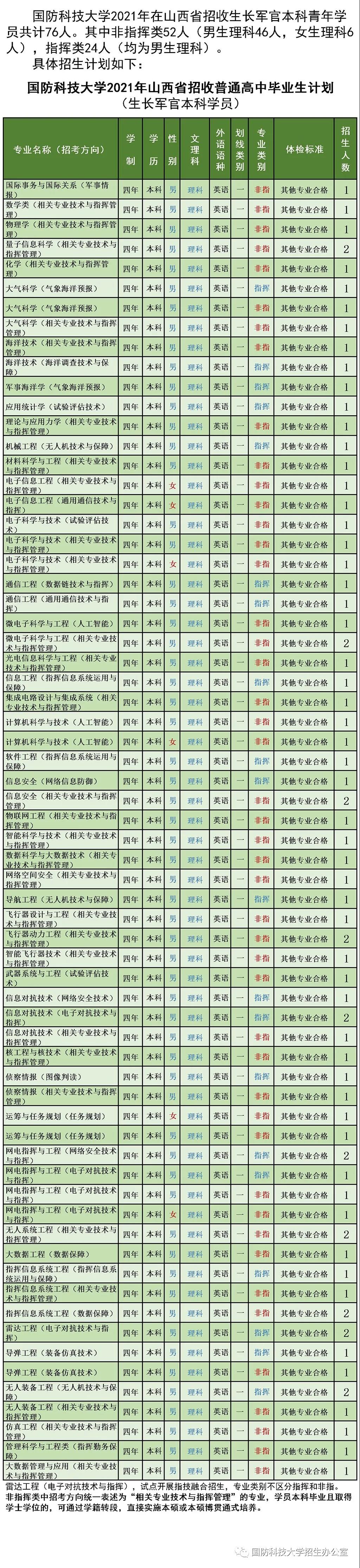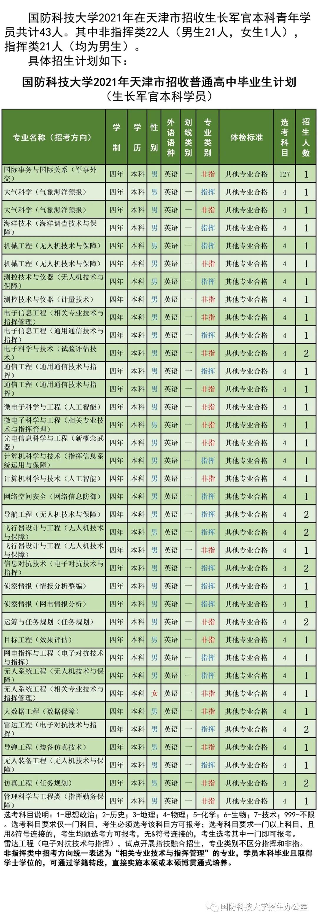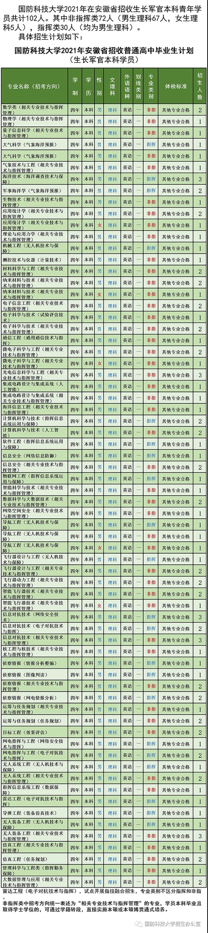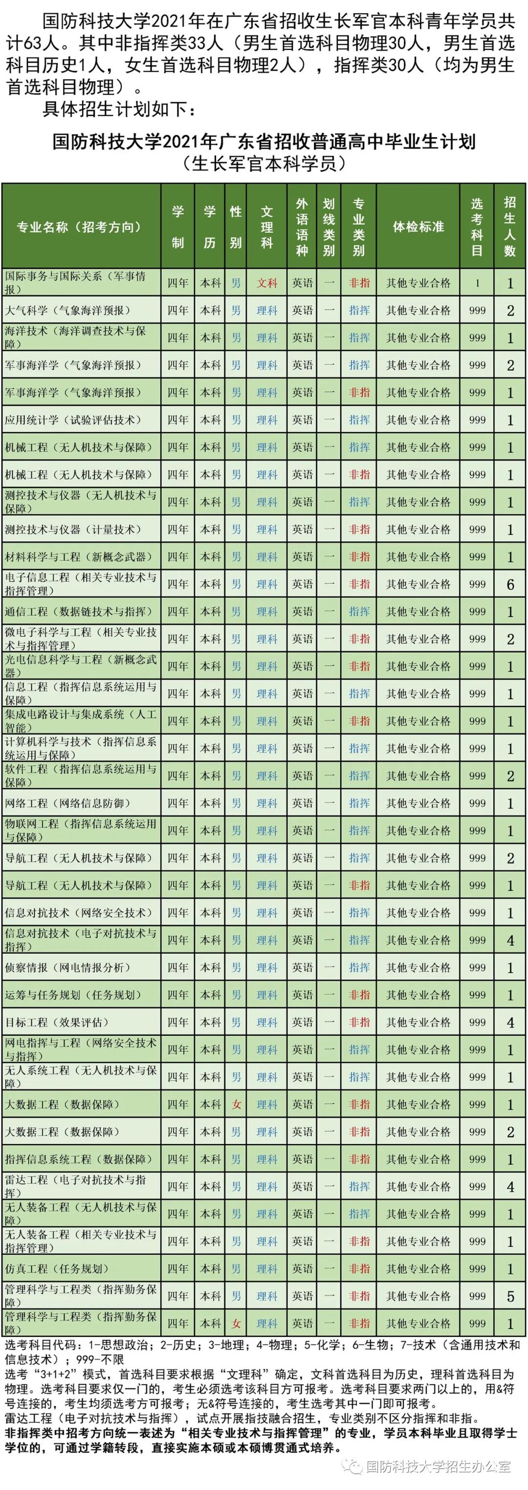 经教育部和军委机关批准,国防科技大学2021年招收普通高中毕业生计划(生长军官本科学员)正式发布。敬请广大考生及家长关注。