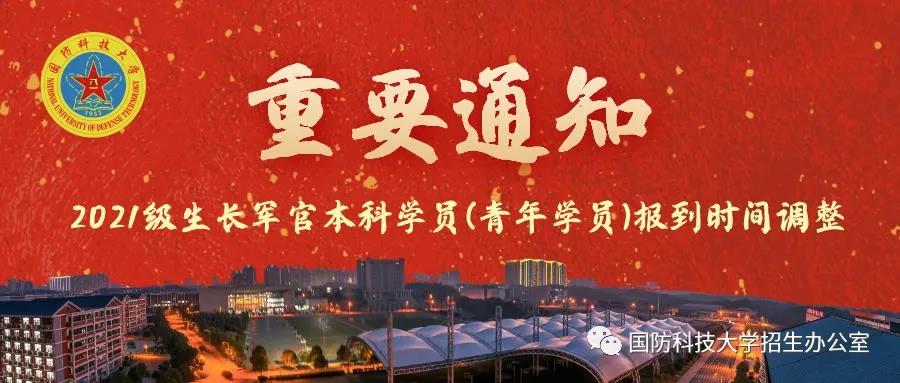 国防科技大学2021级生长军官本科学员(青年学员)报到时间调整